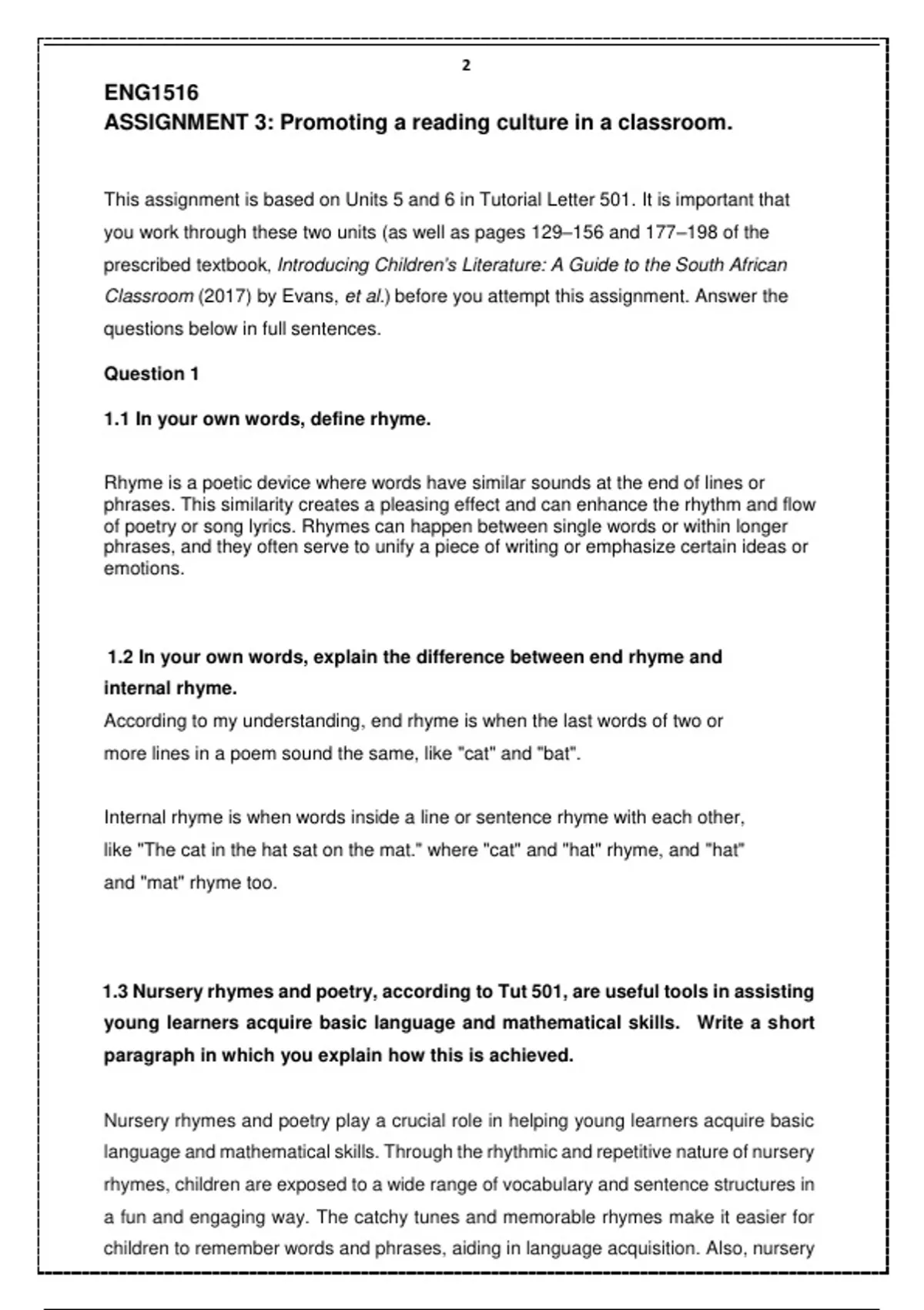 1.3 Nursery rhymes and poetry, according to Tut 501, are useful tools in assisting