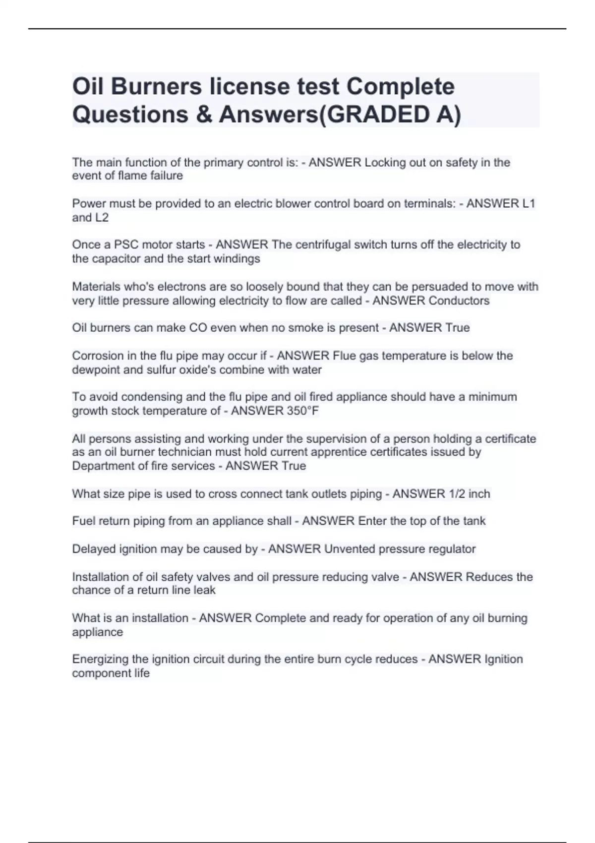 Oil Burners license test Complete Questions & Answers(GRADED A)