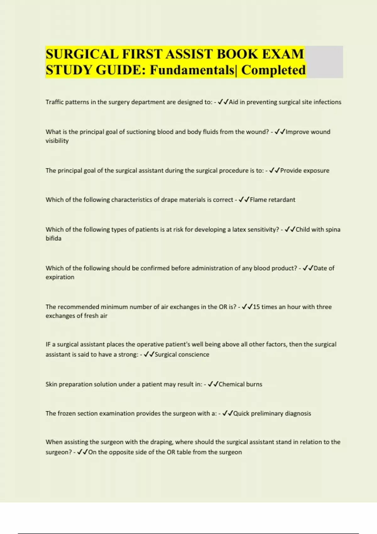 SURGICAL FIRST ASSIST BOOK EXAM STUDY GUIDE: Fundamentals| Completed