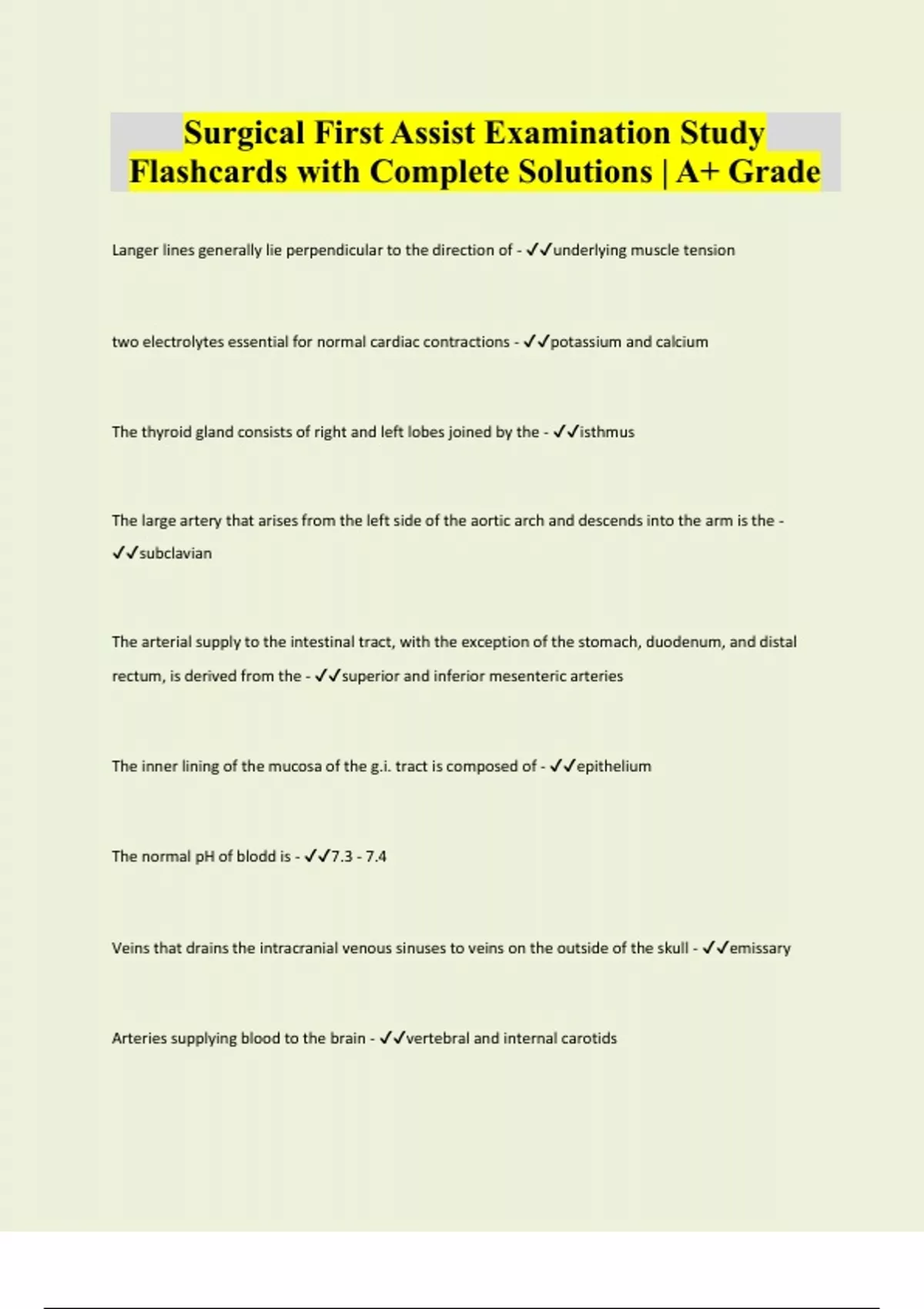 Surgical First Assist Examination Study Flashcards with Complete Solutions | A+ Grade