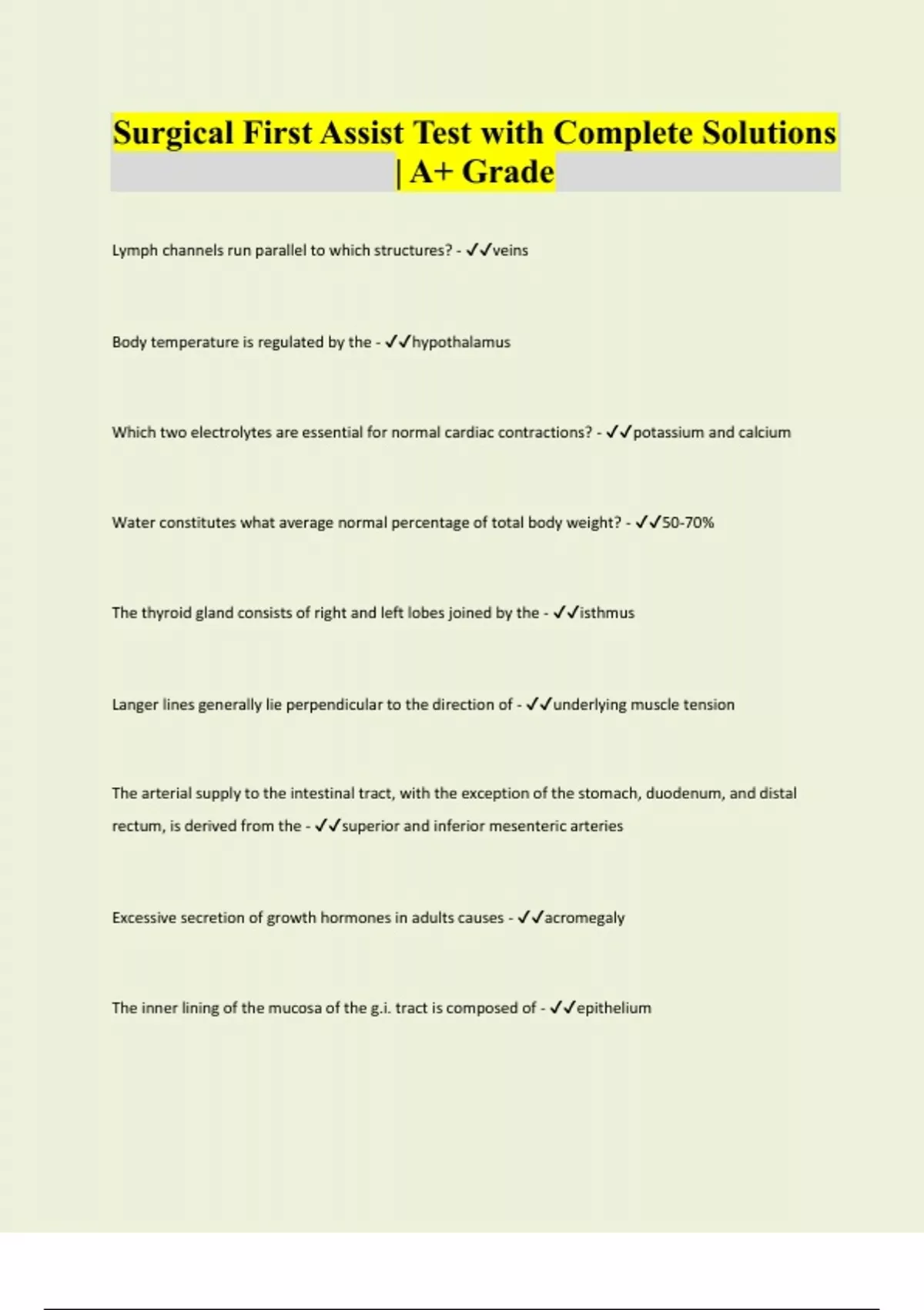 Surgical First Assist Test with Complete Solutions | A+ Grade
