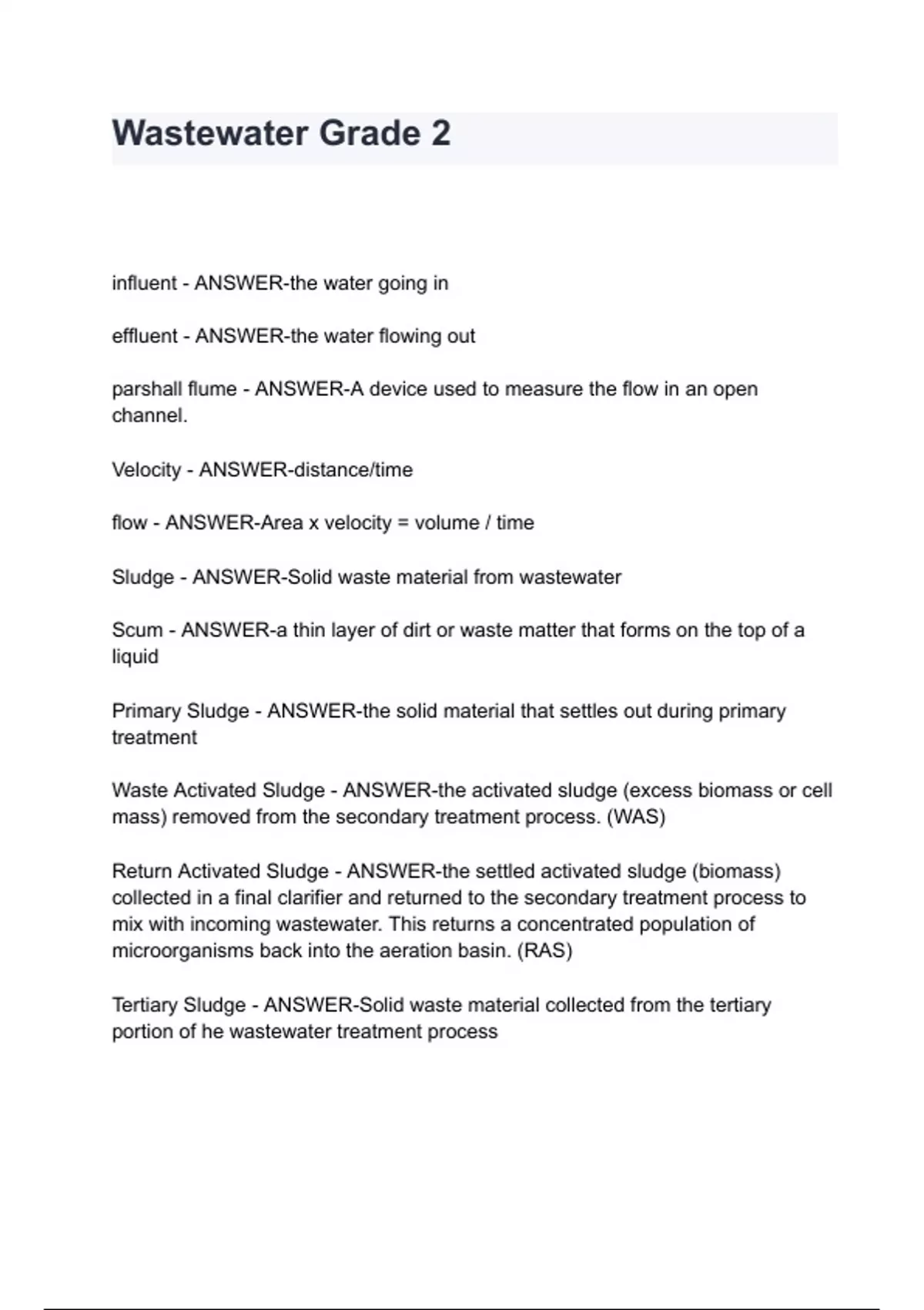wastewater practice exam with complete solution