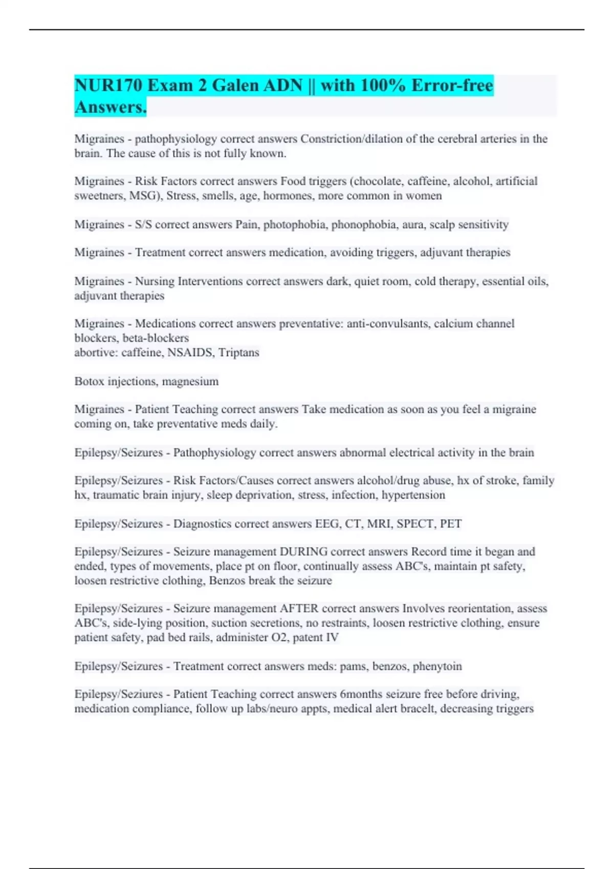 NUR170 Exam 2 Galen ADN || with 100% Error-free Answers.