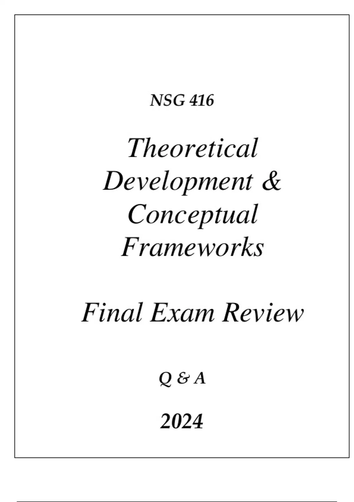 (UOP) NSG 416 THEORETICAL DEVELOPMENT & CONCEPTUAL FRAMEWORKS COMPREHENSIVE EXAM