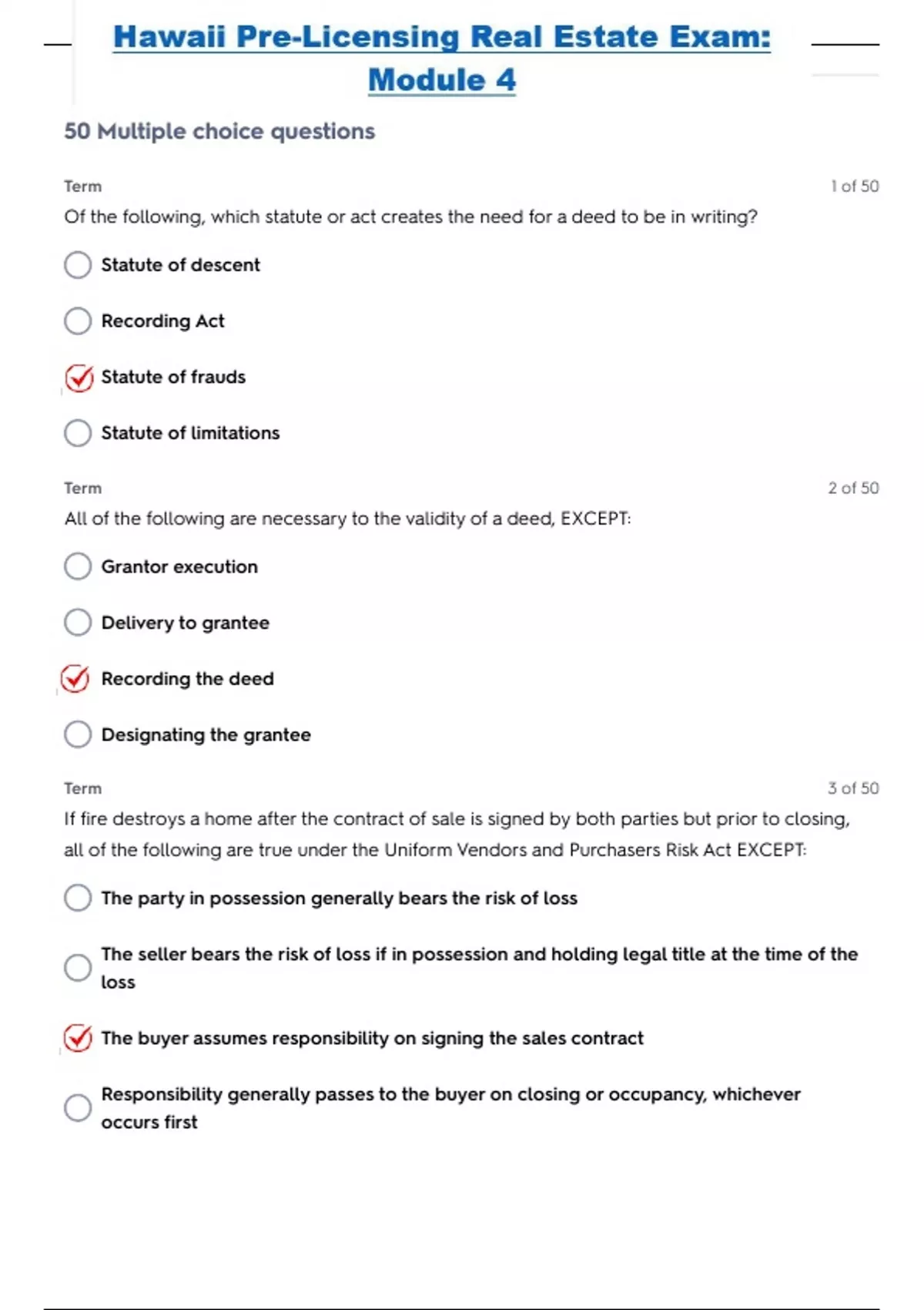 Module 4 Hawaii Pre-Licensing Real Estate Exam