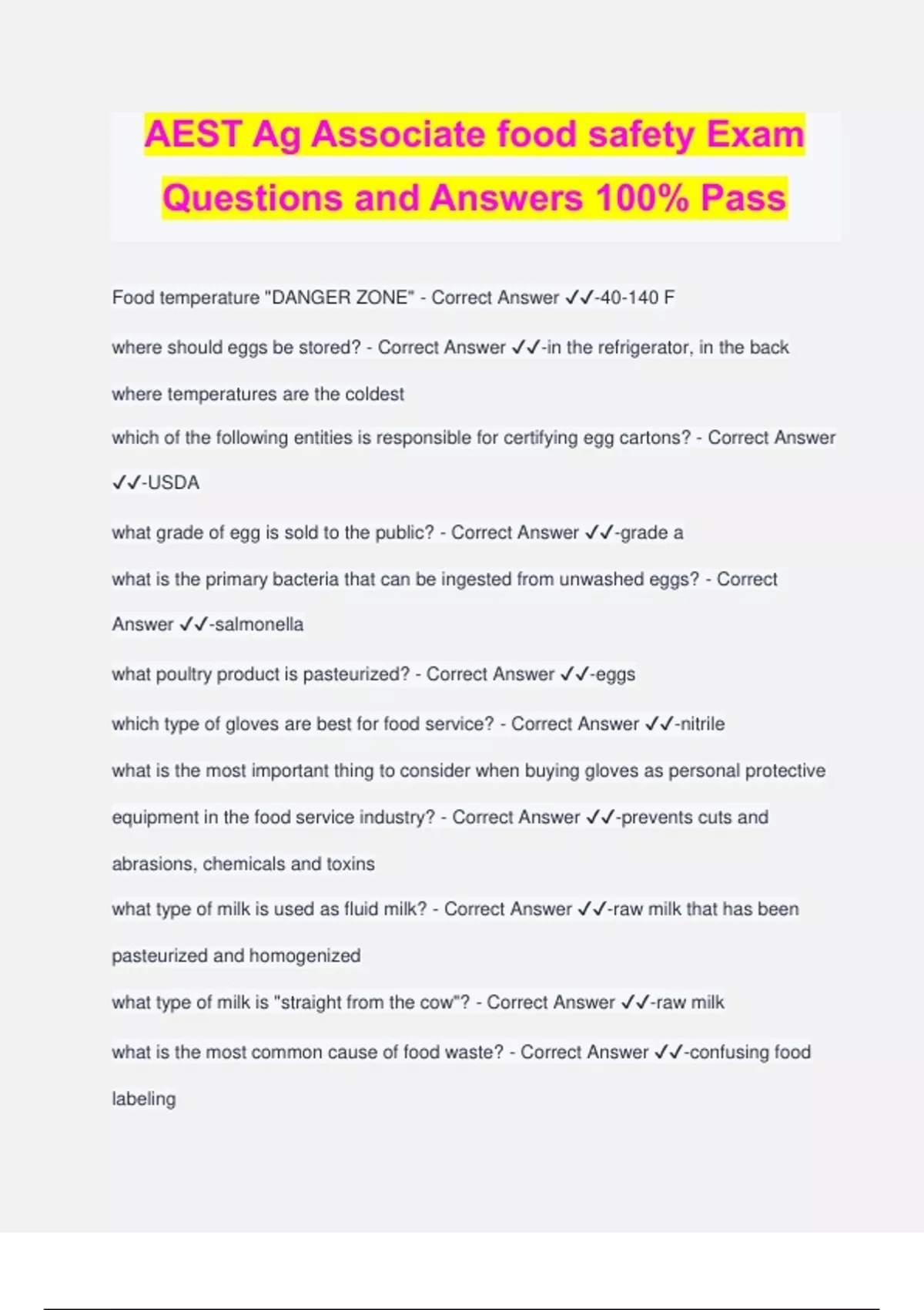 AEST Ag Associate food safety Exam Questions and Answers 100% Pass