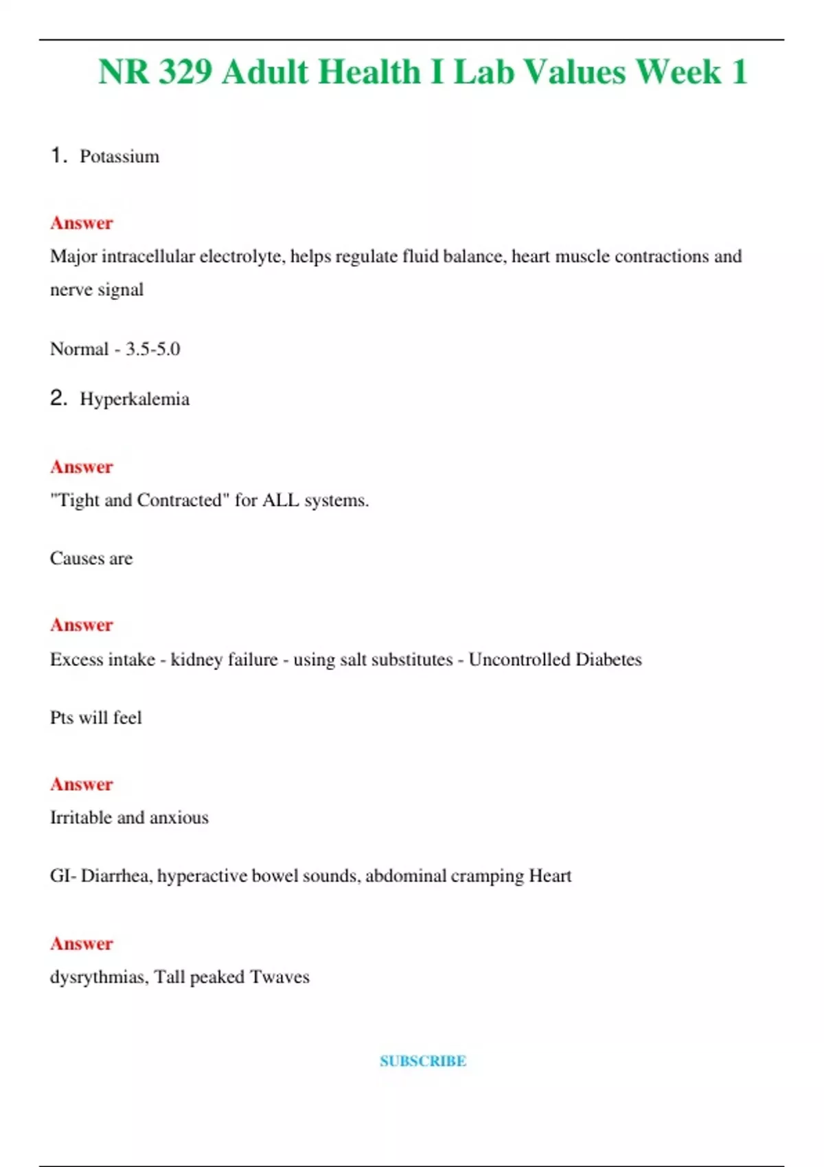 NR 329 Adult Health I Lab Values Week 1 (Latest 2024 / 2025) Questions and Answers (Verified Answers)