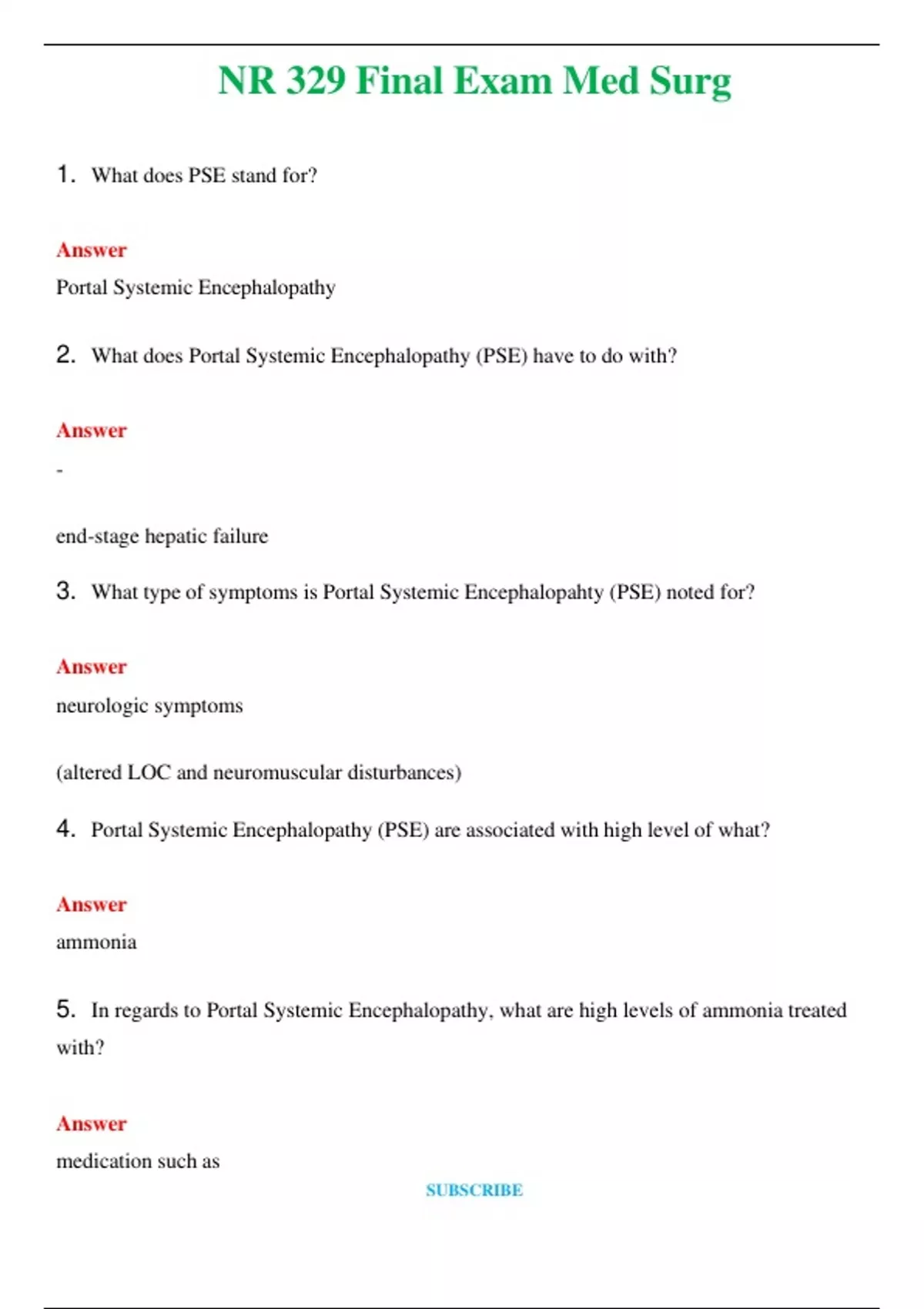 nr 329 final exam med surg