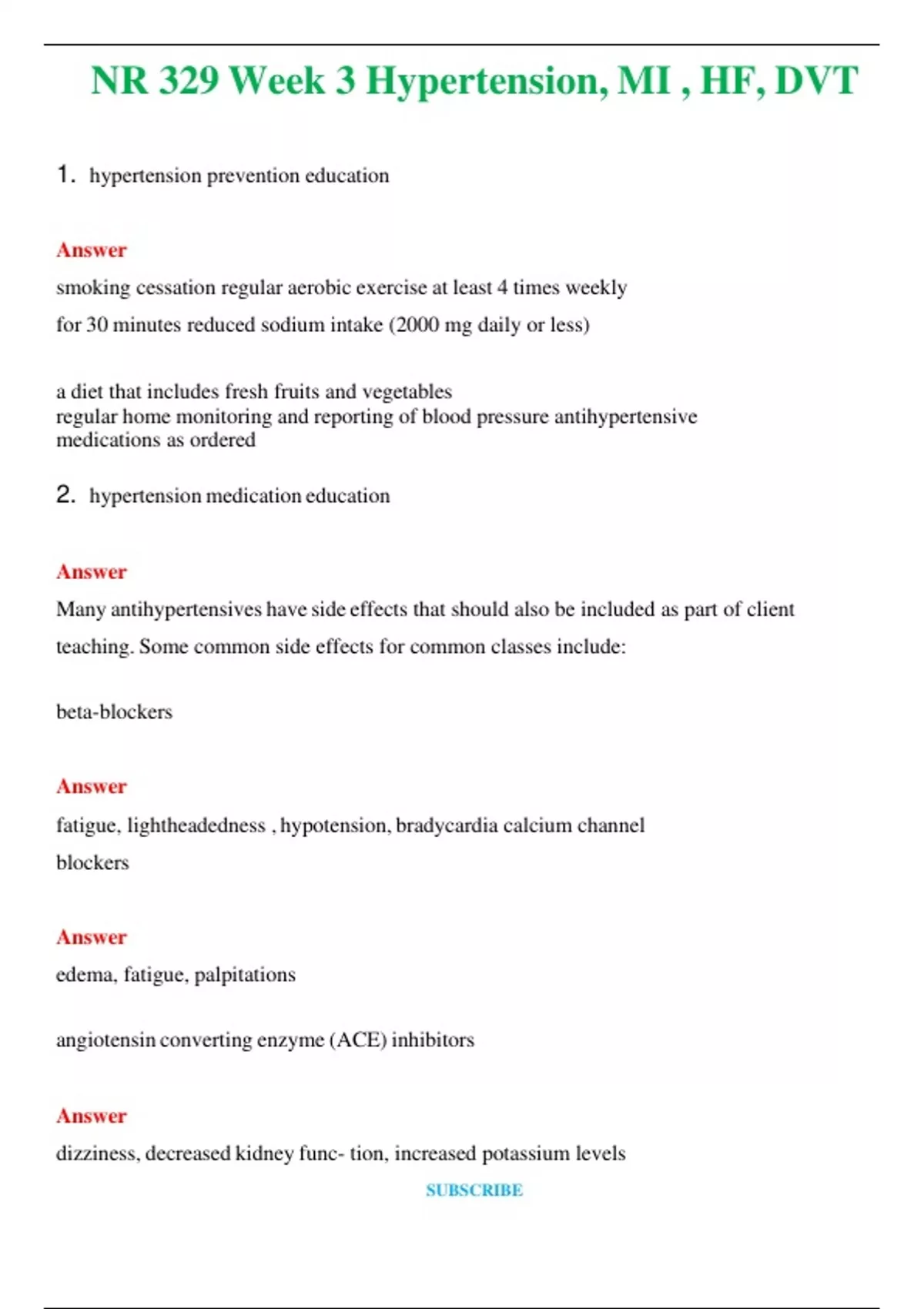 NR 329 Week 3 Hypertension, MI , HF, DVT (Latest 2024 / 2025) Questions and Answers (Verified Answers)