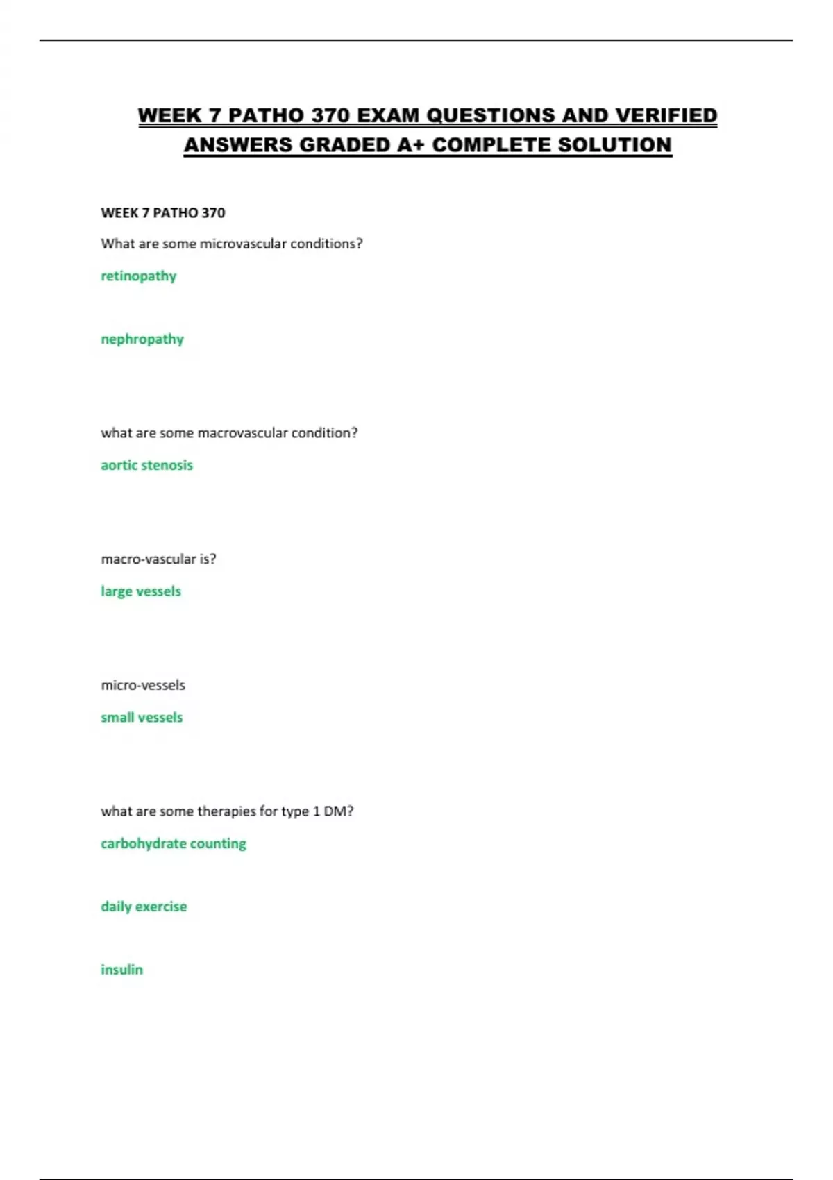 WEEK 7 PATHO 370 EXAM QUESTIONS AND VERIFIED ANSWERS GRADED A+ COMPLETE SOLUTION WEEK 7 PATHO 370 EXAM QUESTIONS AND VERIFIED ANSWERS GRADED A+ COMPLETE SOLUTION WEEK 7 PATHO 370 EXAM QUESTIONS AND VERIFIED ANSWERS GRADED A+ COMPLETE SOLUTION