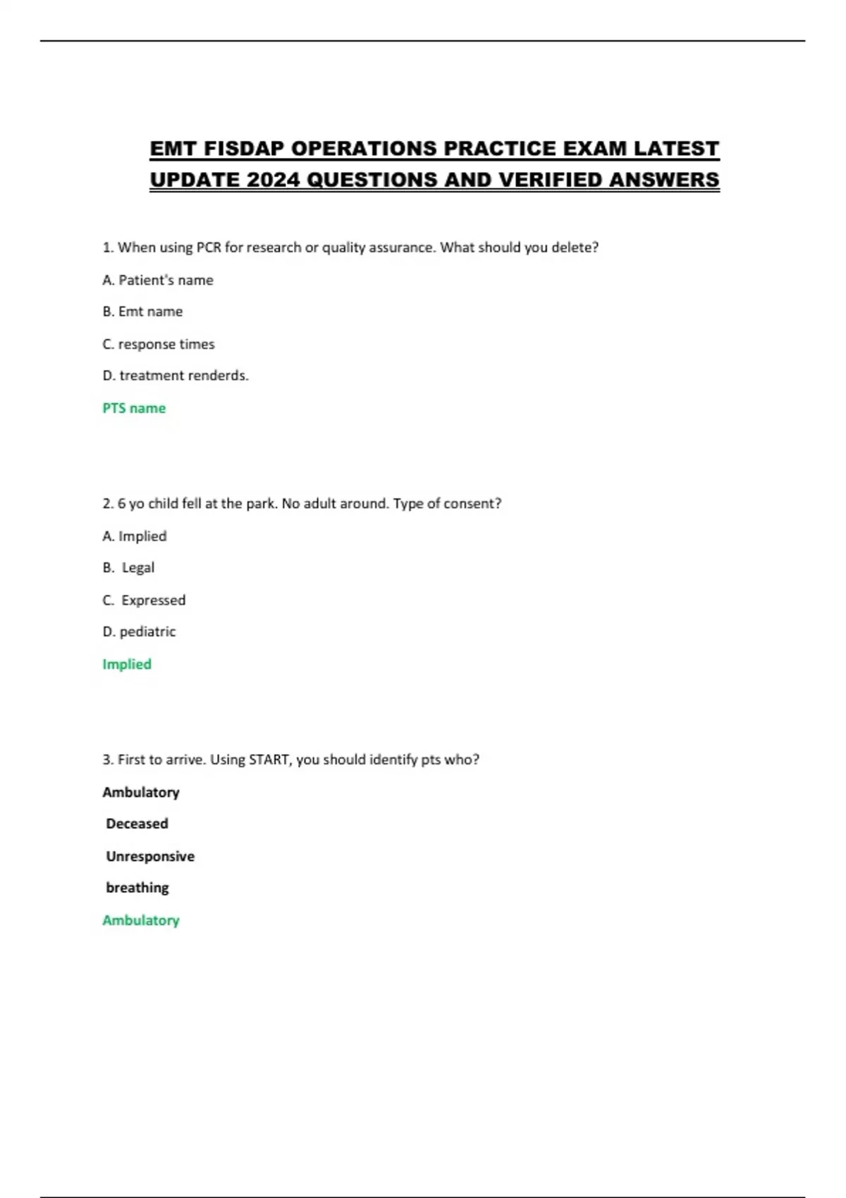 EMT FISDAP OPERATIONS PRACTICE EXAM LATEST UPDATE 2024 QUESTIONS AND VERIFIED ANSWERS EMT FISDAP OPERATIONS PRACTICE EXAM LATEST UPDATE 2024 QUESTIONS AND VERIFIED ANSWERS