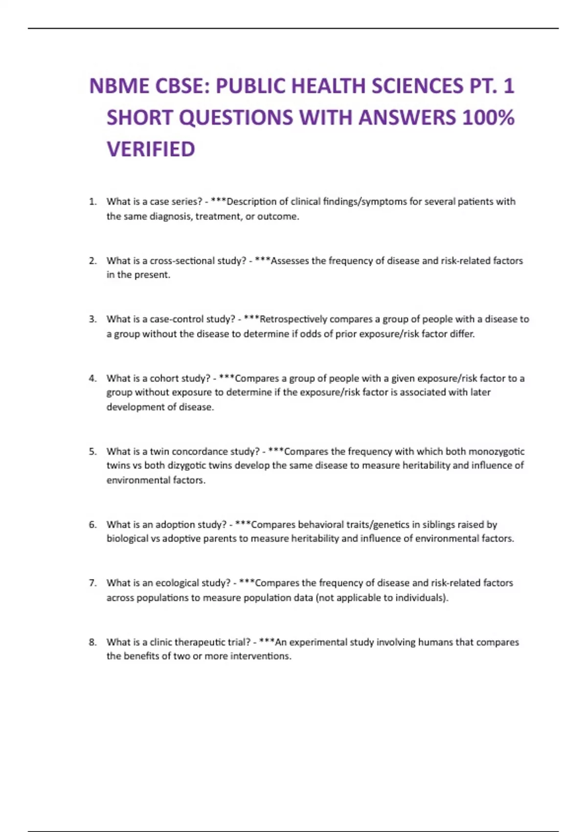 NBME CBSE: PUBLIC HEALTH SCIENCES PT. 1 SHORT QUESTIONS WITH ANSWERS 100% VERIFIED
