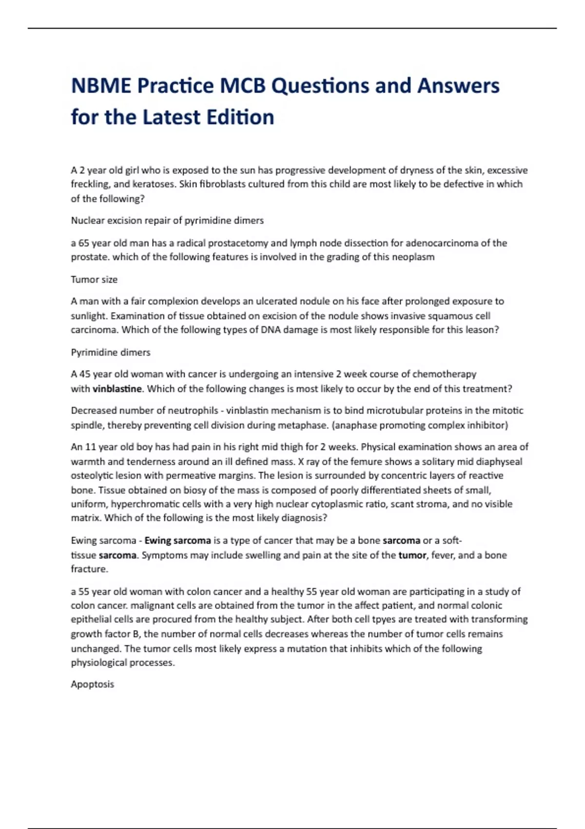 NBME Practice MCB Questions and Answers for the Latest Edition