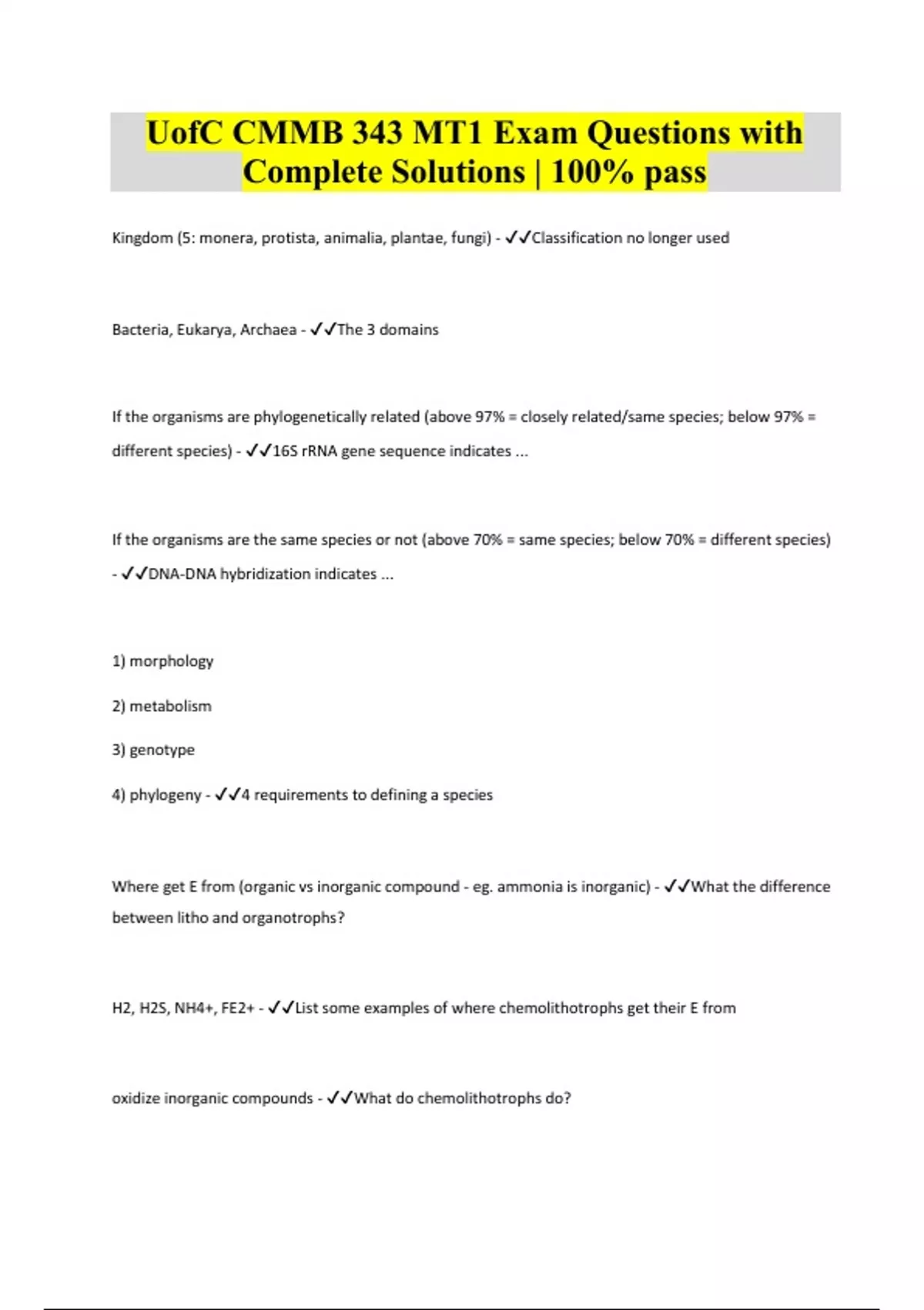 UofC CMMB 343 MT1 Exam Questions with Complete Solutions | 100% pass