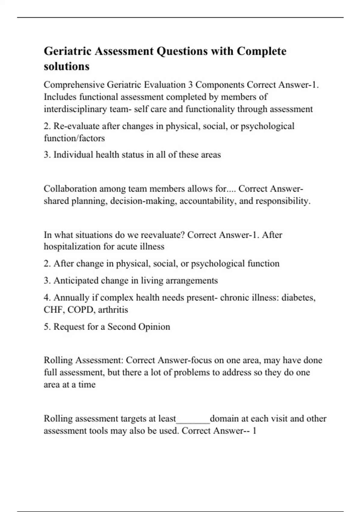 geriatric assessment questions with complete solut