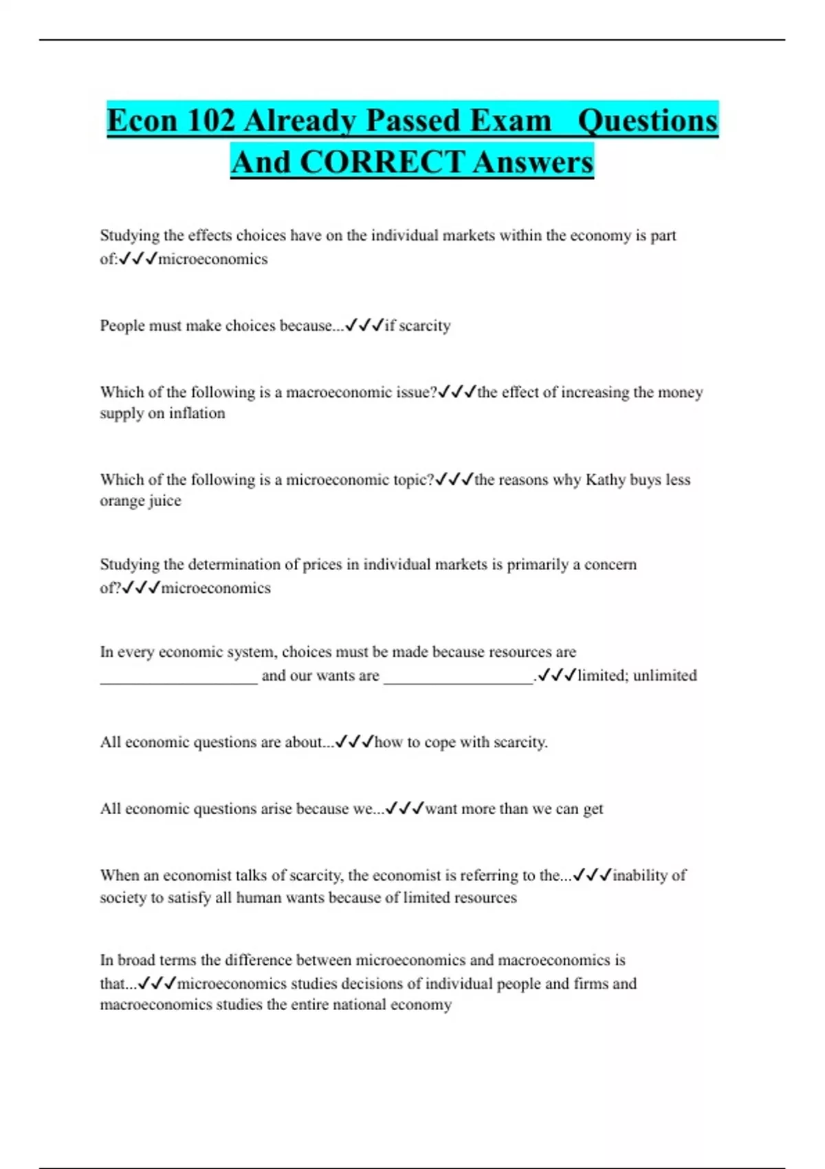 Econ 102 Already Passed Exam Questions And CORRECT Answers
