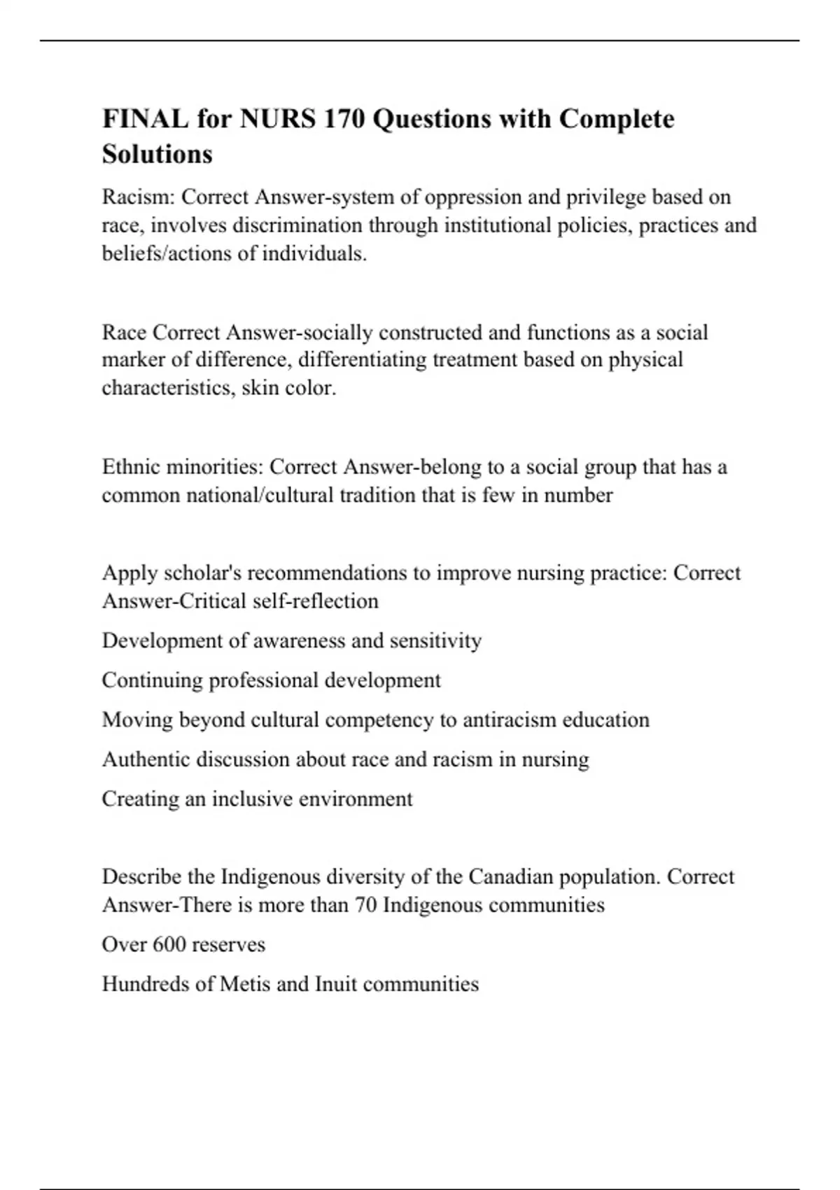 NURS 170 Galen College Of Nursing -FINAL for NURS 170 Questions with Complete Solutions.