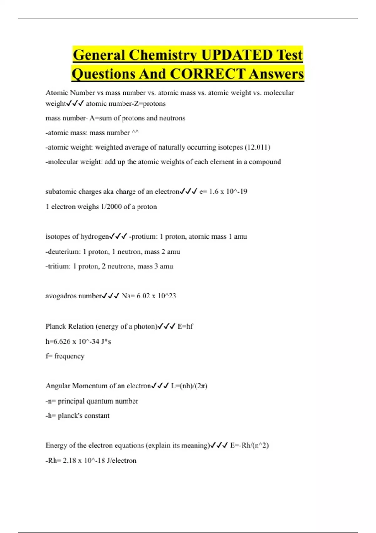 General Chemistry UPDATED Test Questions And CORRECT Answers