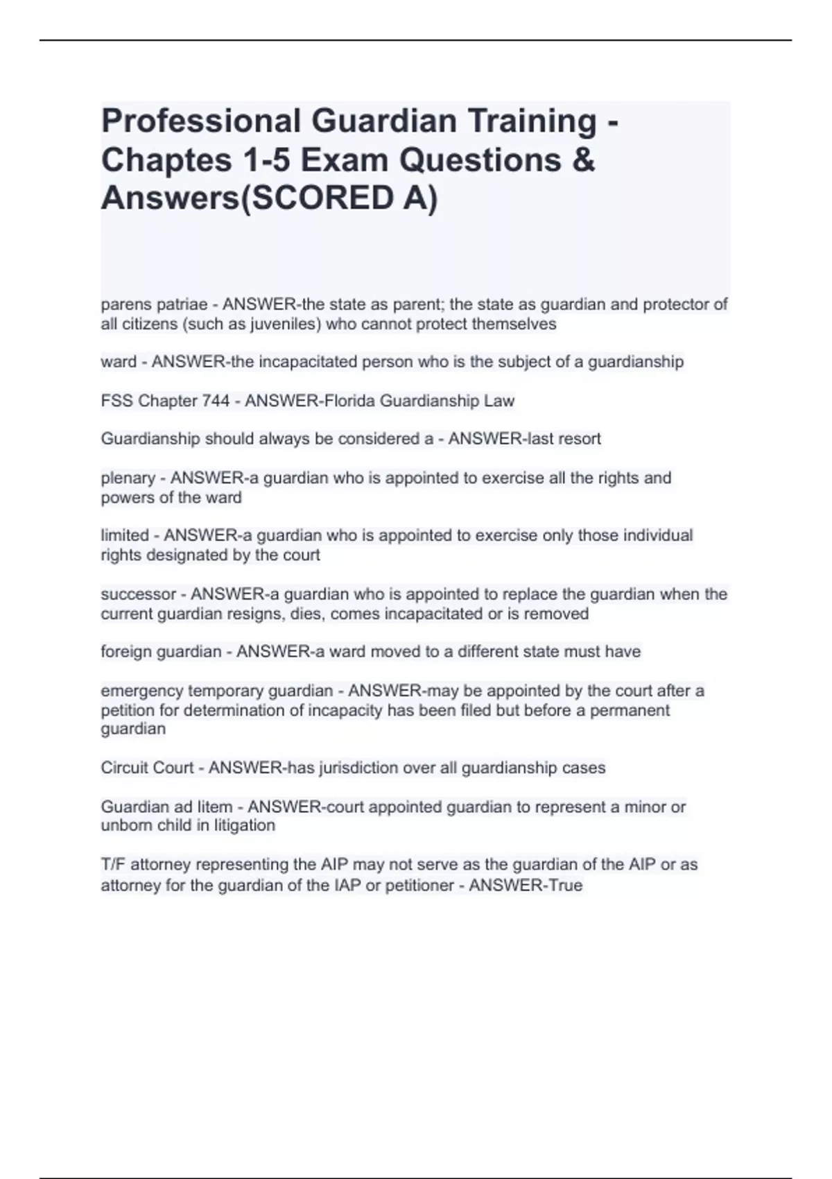 Professional Guardian Training - Chaptes 1-5 Exam Questions & Answers(SCORED A)