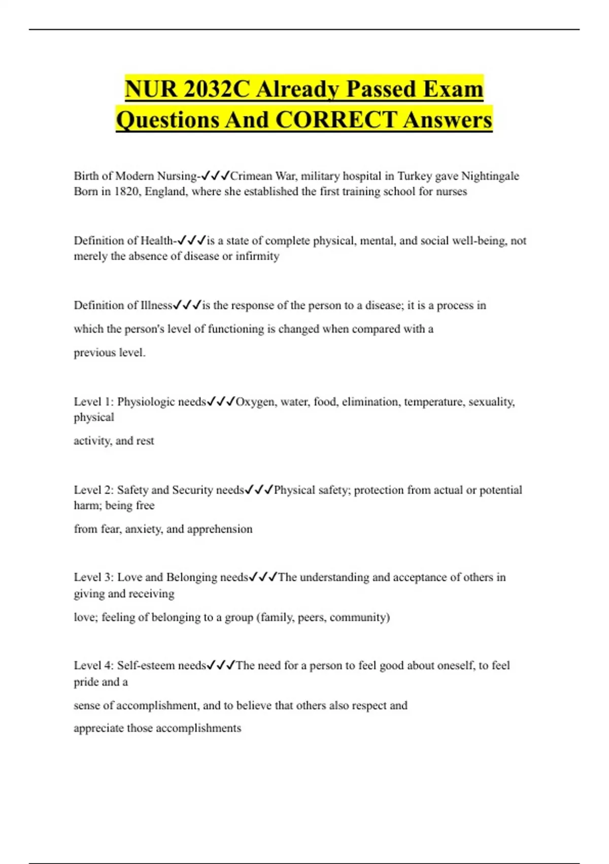 NUR 2032C Already Passed Exam Questions And CORRECT Answers