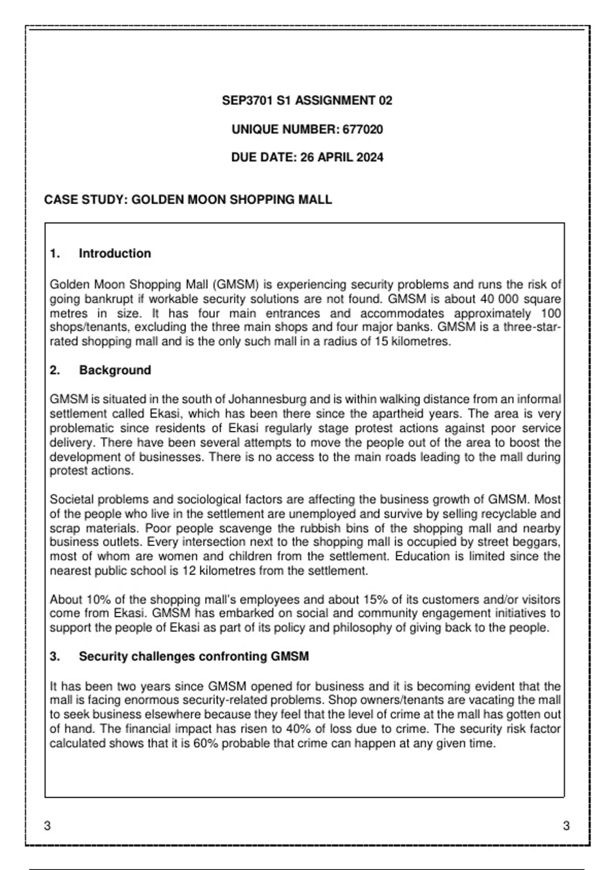 Golden Moon Shopping Mall (GMSM) is experiencing security problems and runs the risk of