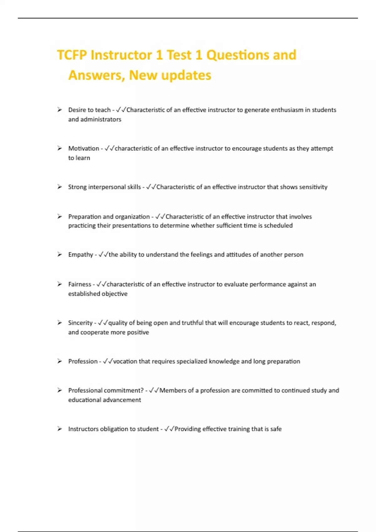 TCFP Instructor 1 Test 1 Questions and Answers, New updates