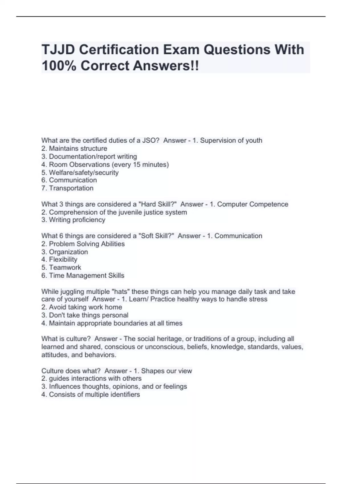 tjjd certification exam questions with 100 correc