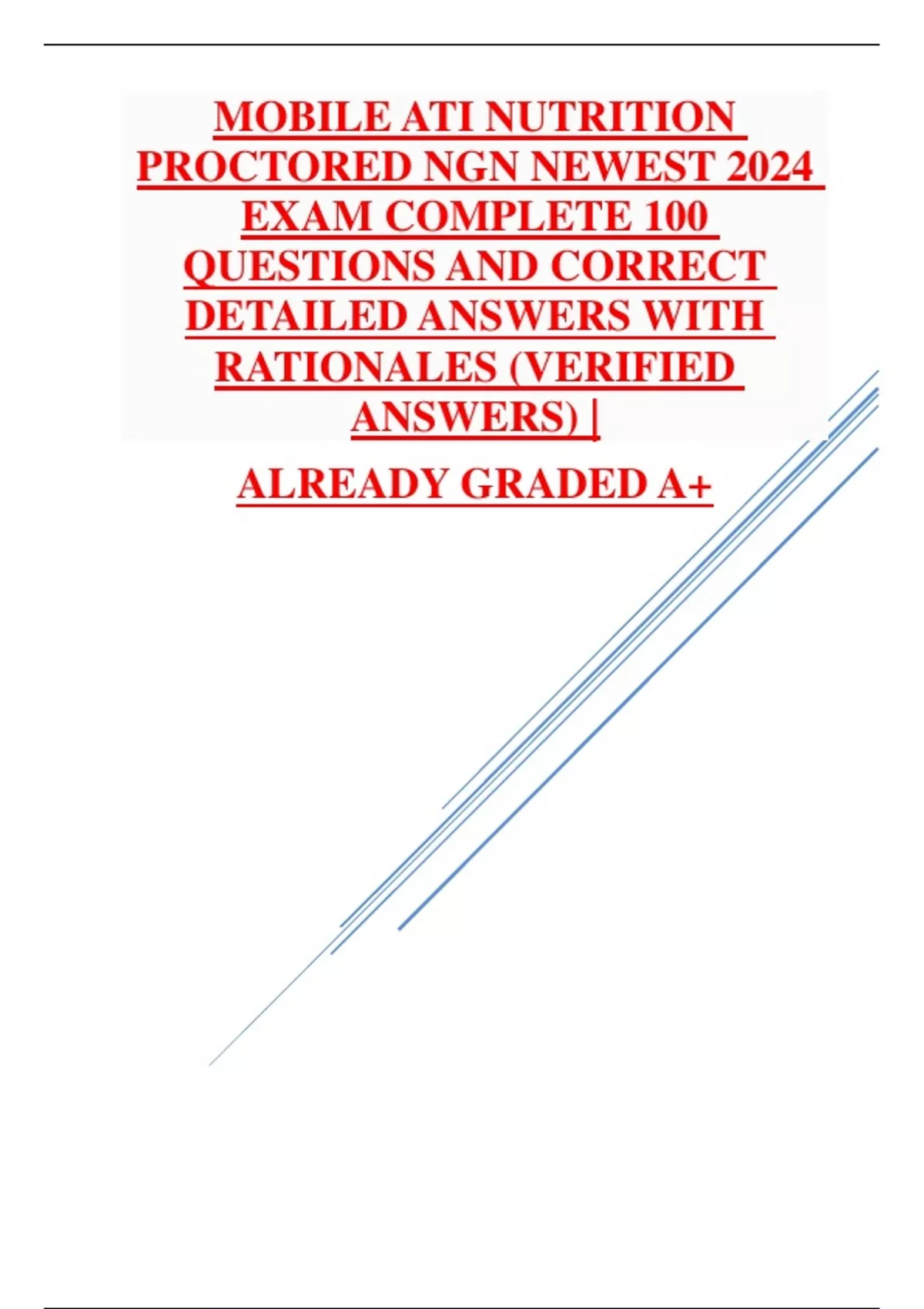 MOBILE ATI NUTRITION PROCTORED NGN NEWEST 2024 EXAM COMPLETE 100 QUESTIONS AND CORRECT DETAILED ANSWERS WITH RATIONALES (VERIFIED ANSWERS) | ALREADY GRADED A+