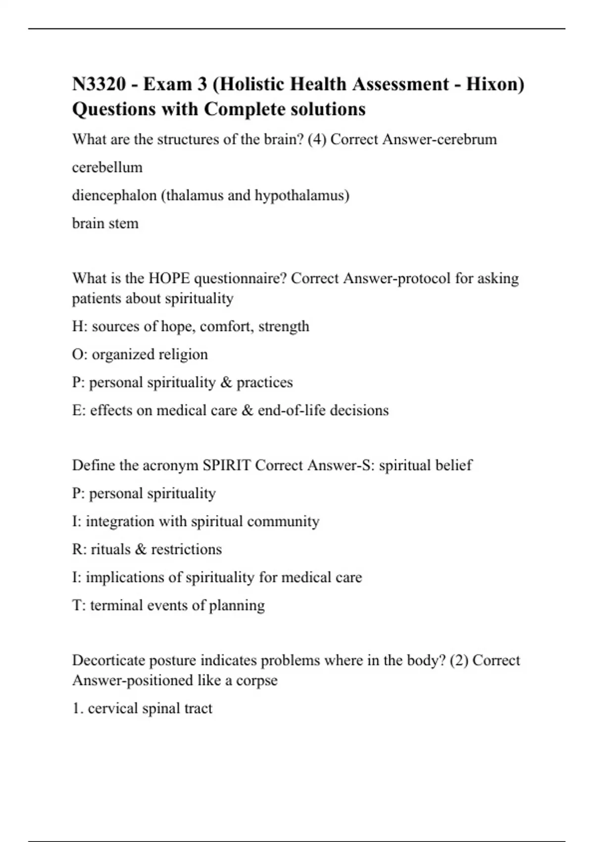 N3320 - Exam 3 (Holistic Health Assessment - Hixon) Questions with Complete solutions