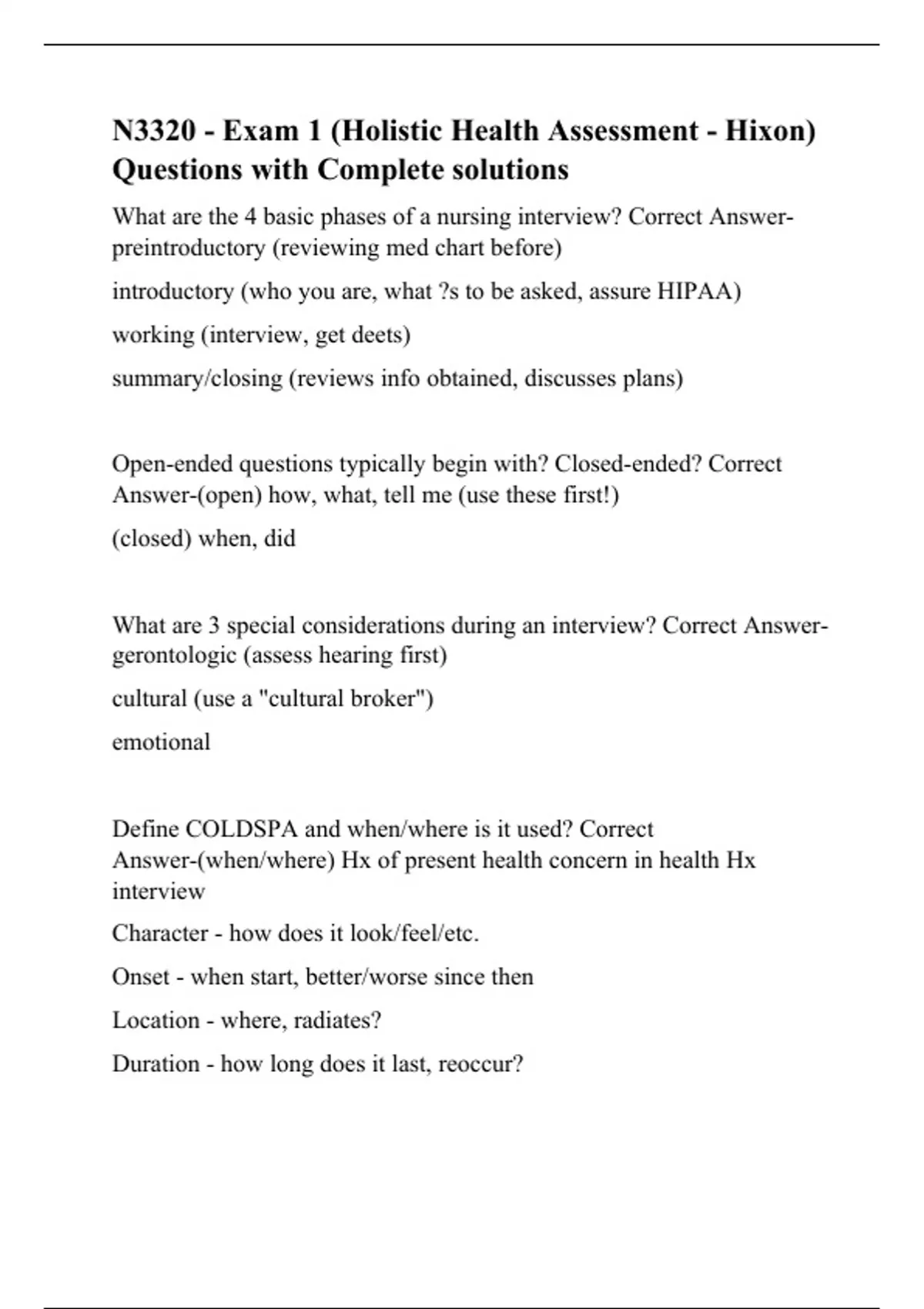 N3320 - Exam 1 (Holistic Health Assessment - Hixon) Questions with Complete solutions