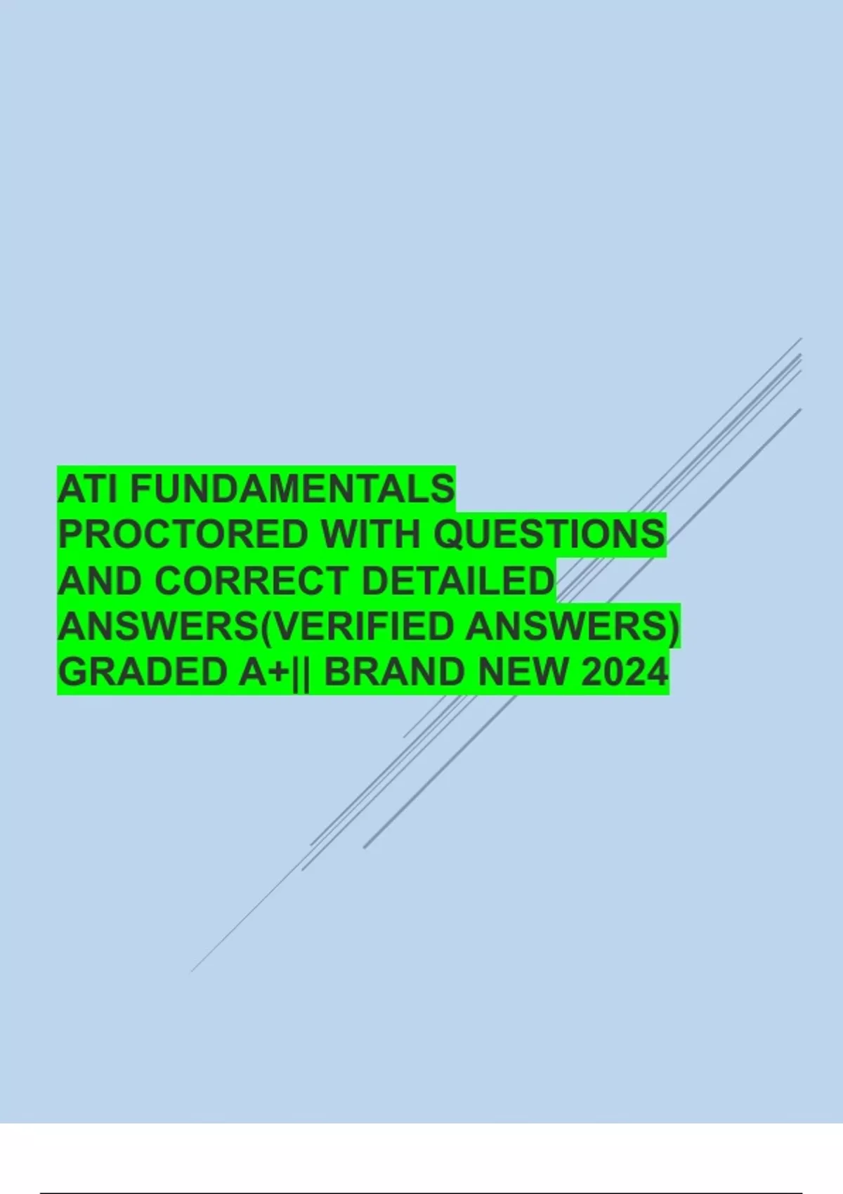 ATI FUNDAMENTALS PROCTORED WITH QUESTIONS AND CORRECT DETAILED ANSWERS(VERIFIED ANSWERS) GRADED A+|| BRAND NEW 2024 1 | P a g e