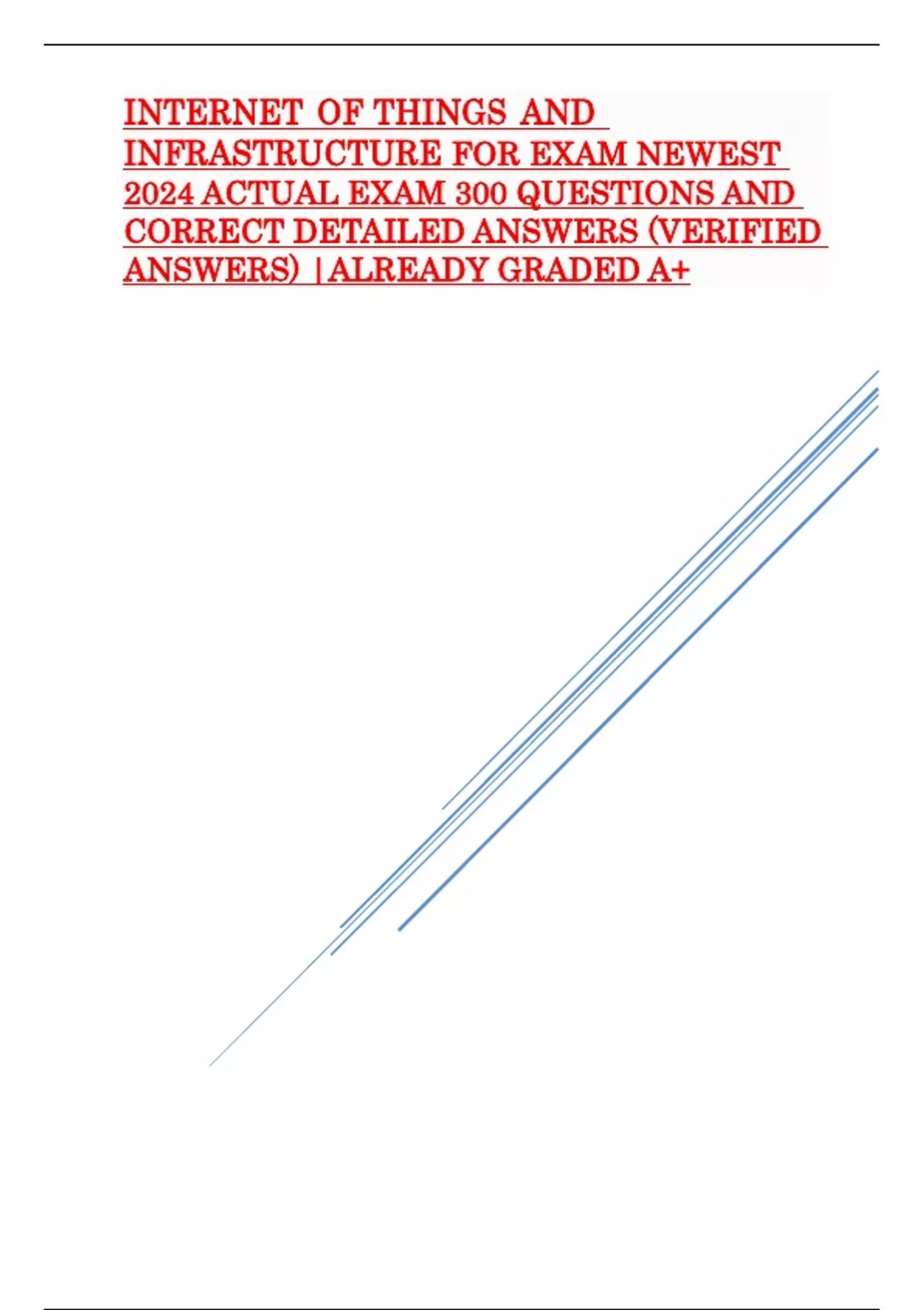 INTERNET OF THINGS AND INFRASTRUCTURE FOR EXAM NEWEST 2024 ACTUAL EXAM 300 QUESTIONS AND CORRECT DETAILED ANSWERS (VERIFIED ANSWERS) |ALREADY GRADED A+