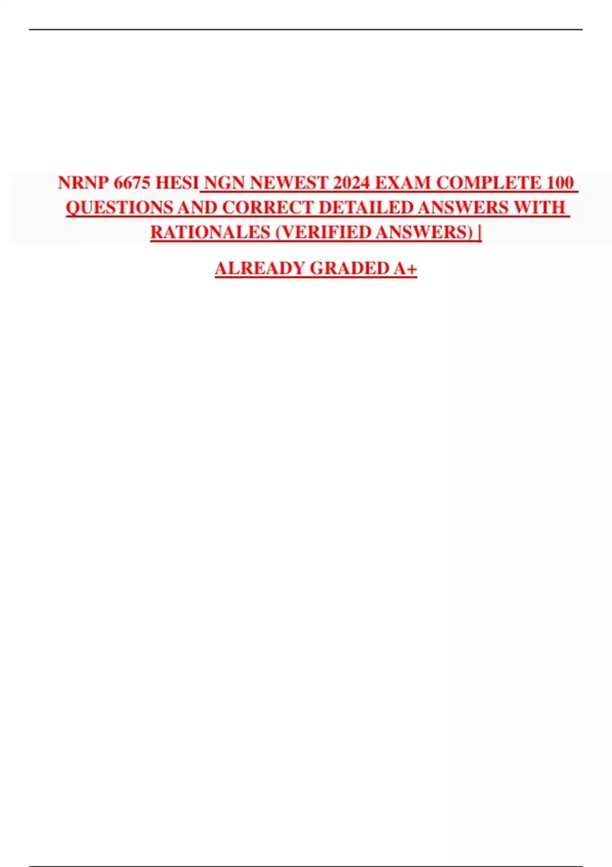 NRNP 6675 HESI NGN NEWEST 2024 EXAM COMPLETE 100 QUESTIONS AND CORRECT DETAILED ANSWERS WITH RATIONALES (VERIFIED ANSWERS) | ALREADY GRADED A+ 1 / 7