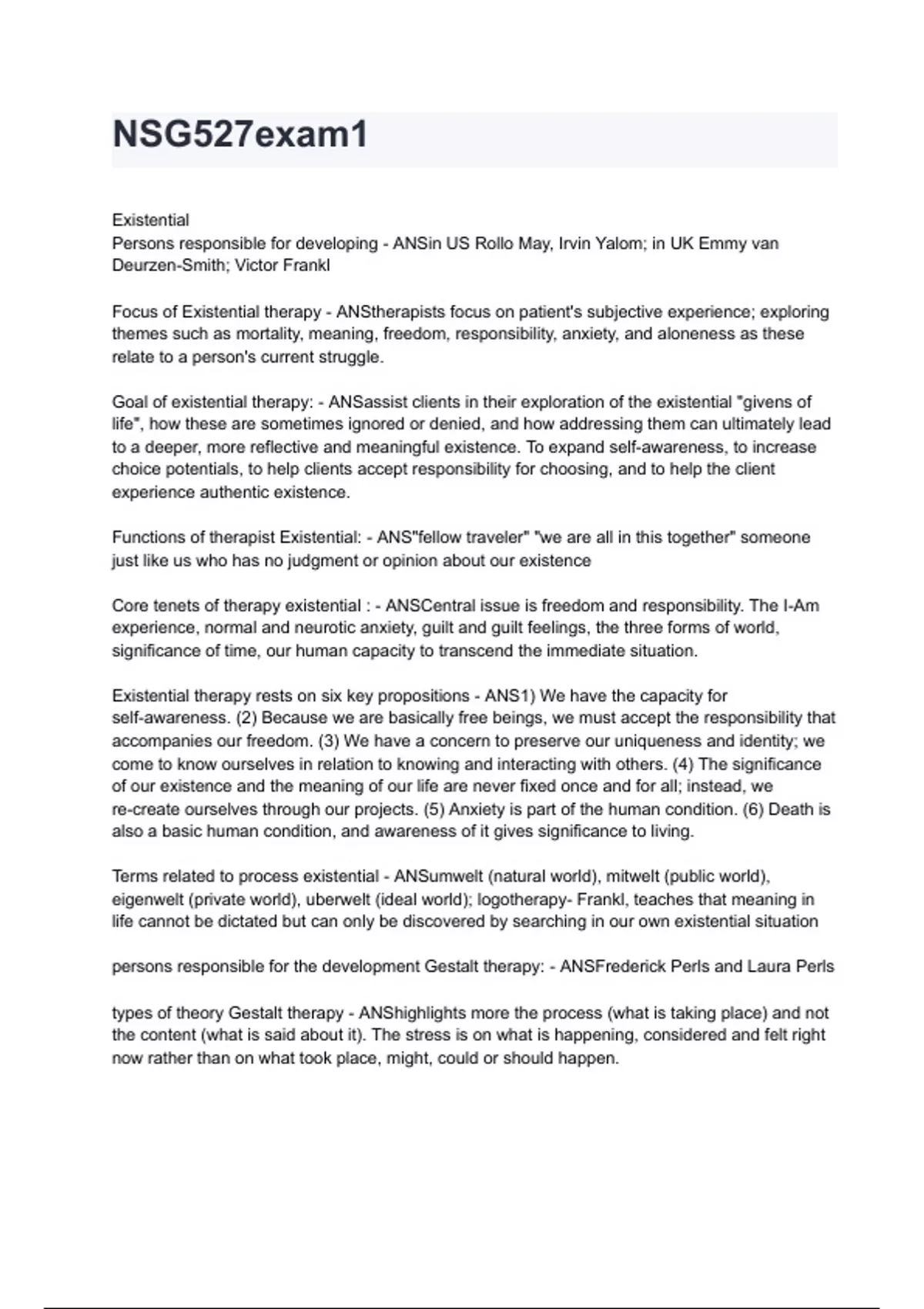 Core tenets of therapy existential : - ANSCentral issue is freedom and responsibility. The I-Am