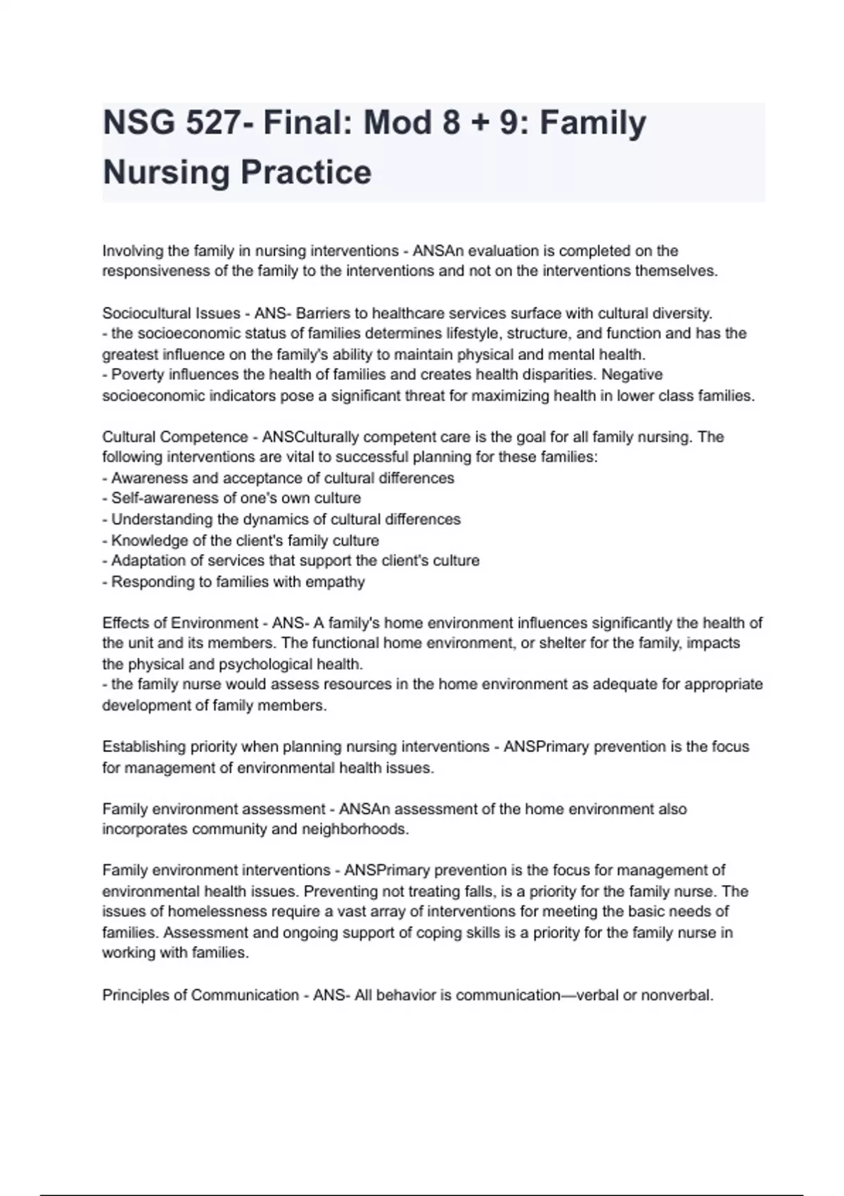 NSG 527- Final: Mod 8 + 9: Family Nursing Practice 2024/2025 graded A+ by experts