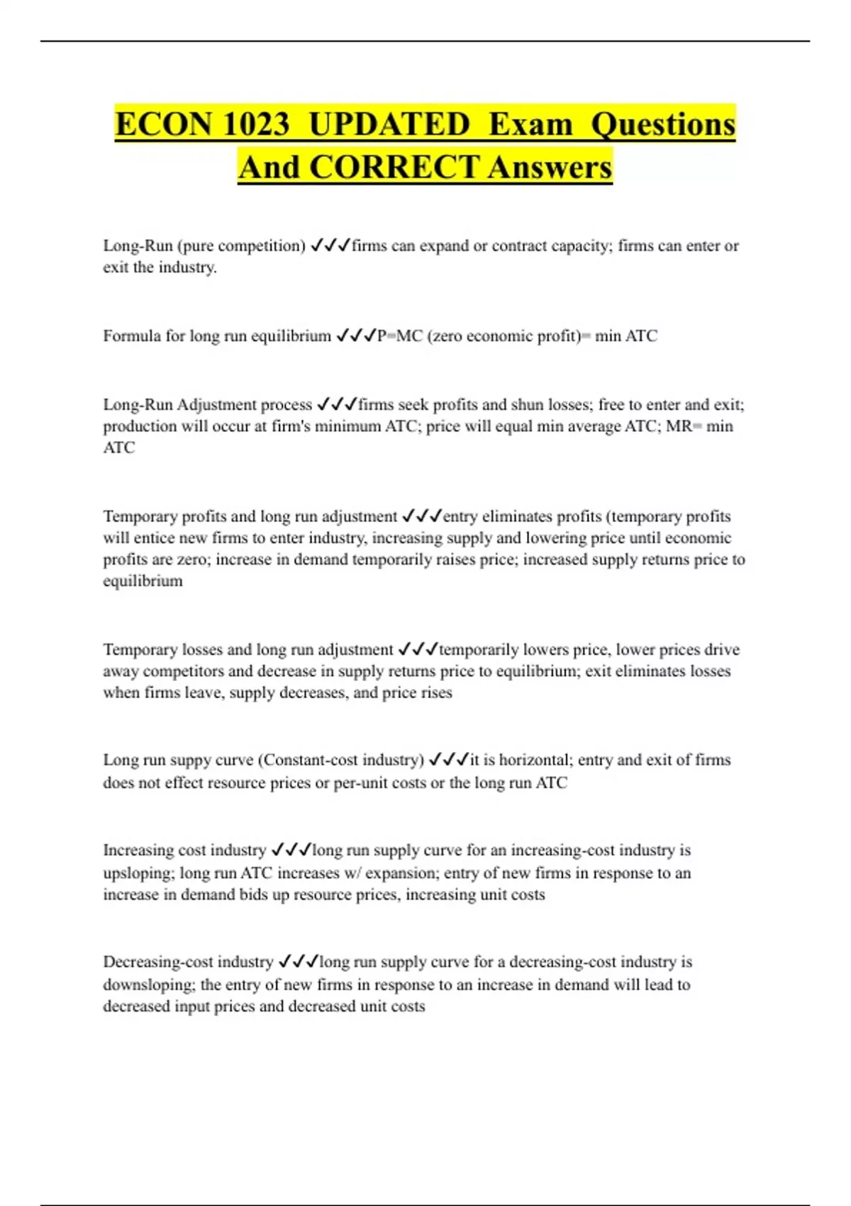 ECON 1023 UPDATED Exam Questions And CORRECT Answers