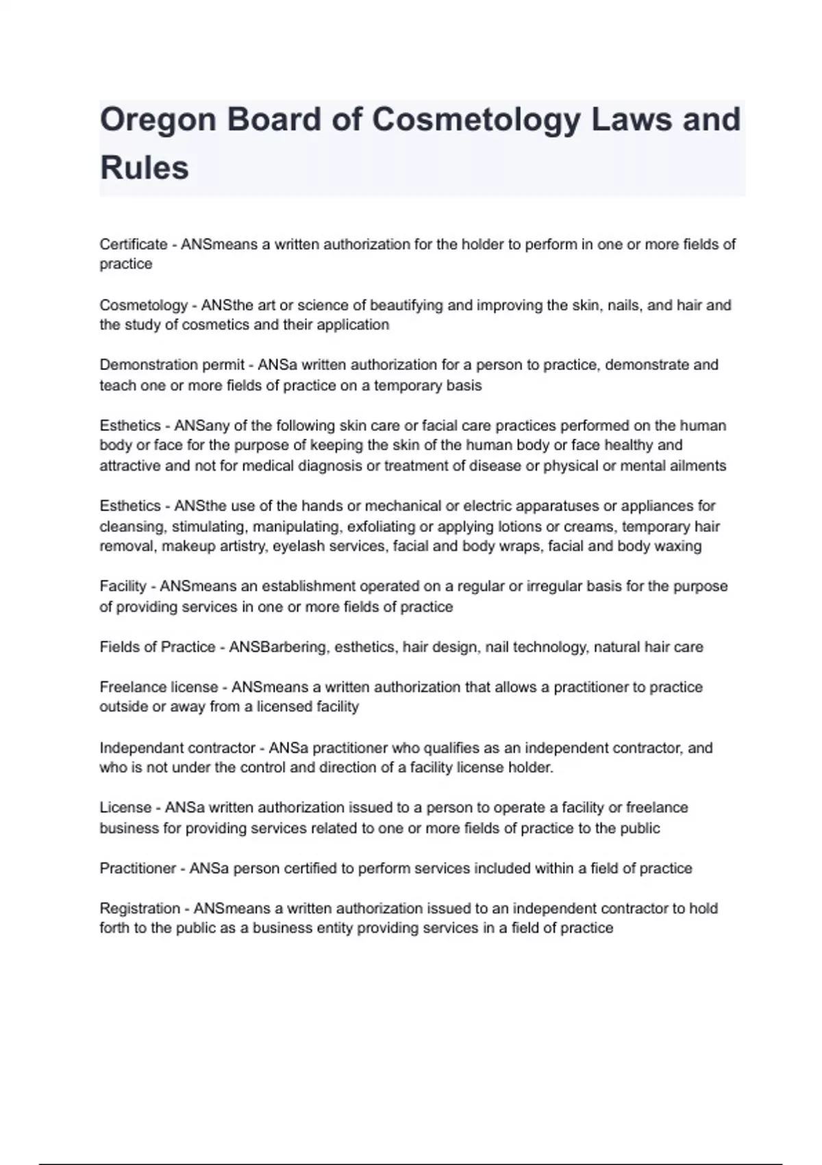 Fields of Practice - ANSBarbering, esthetics, hair design, nail technology, natural hair care