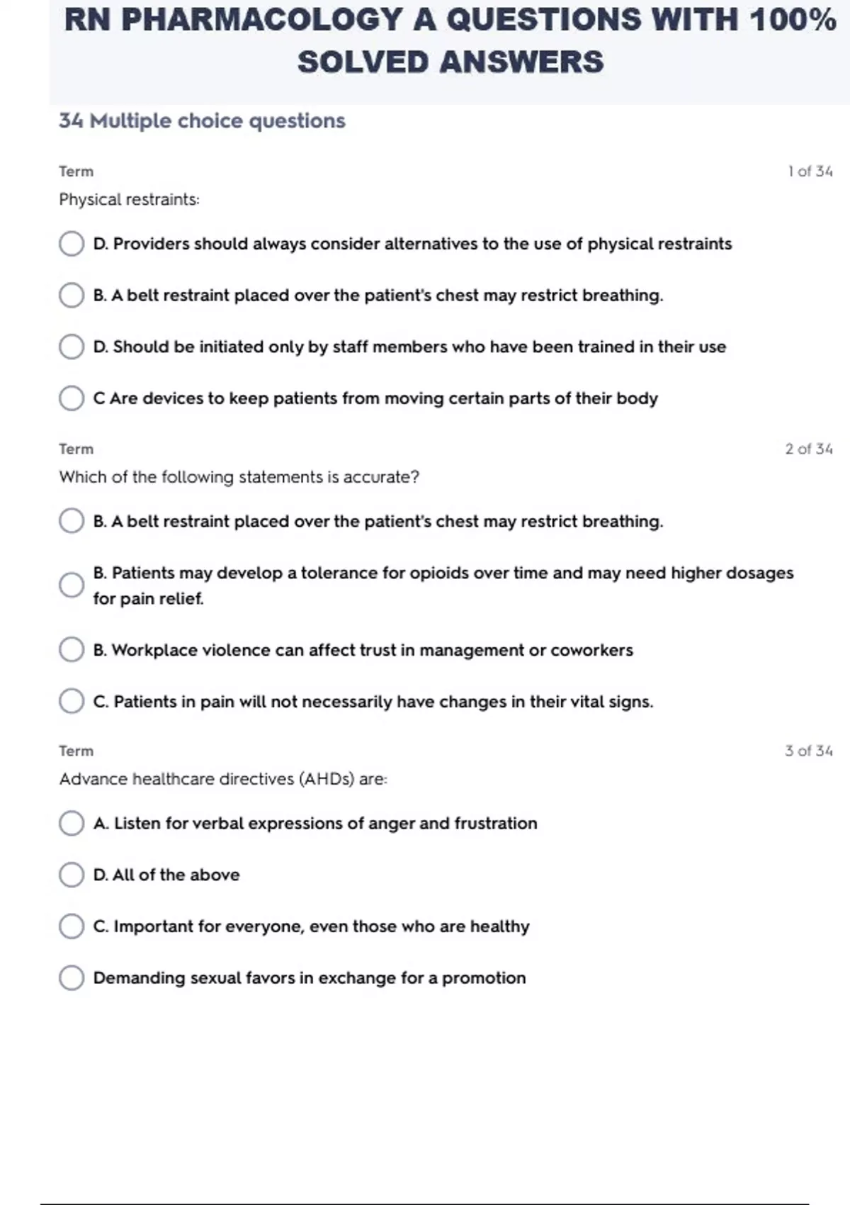 rn pharmacology a questions with 100 solved answe