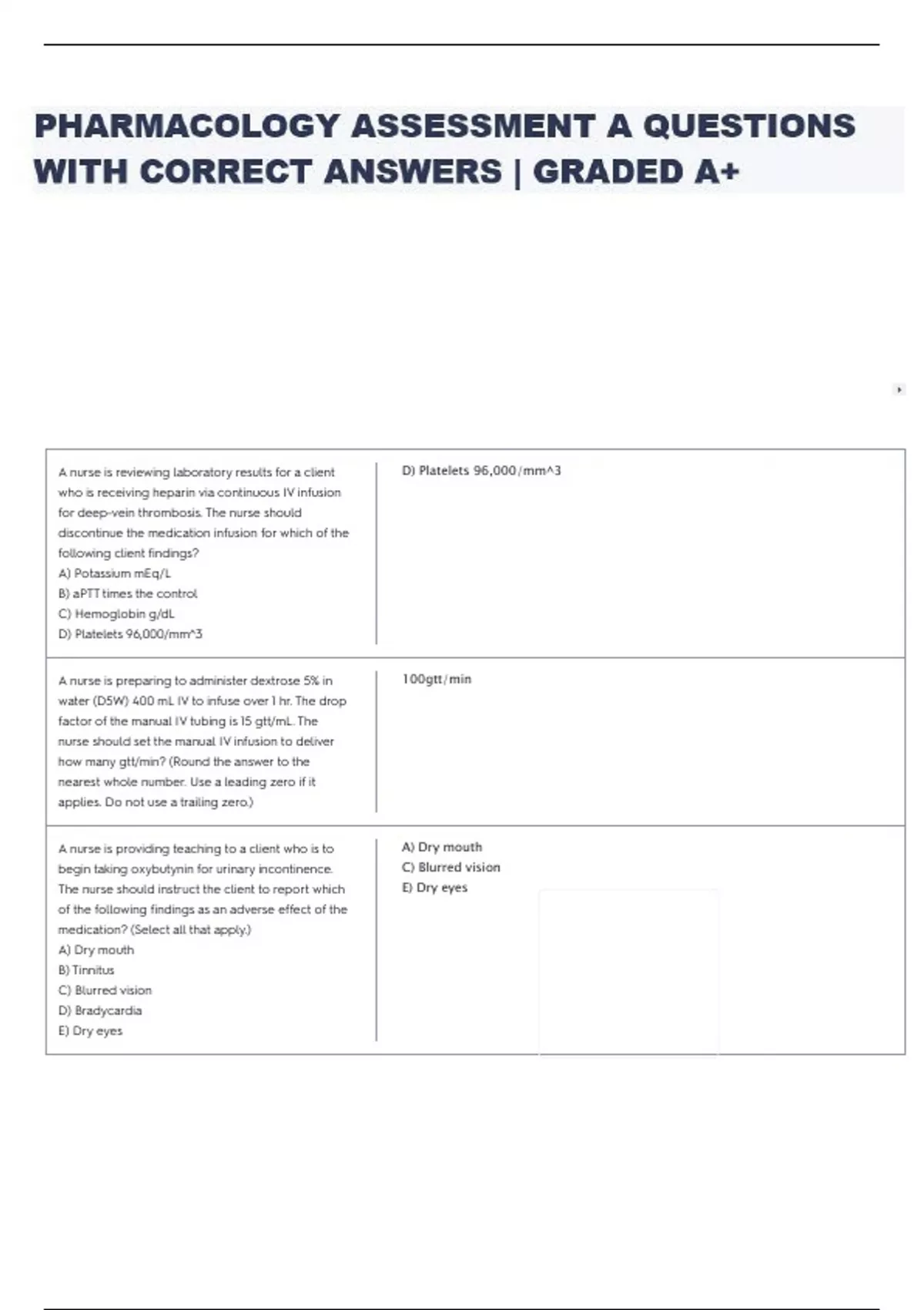 PHARMACOLOGY ASSESSMENT A QUESTIONS WITH CORRECT ANSWERS | GRADED A+