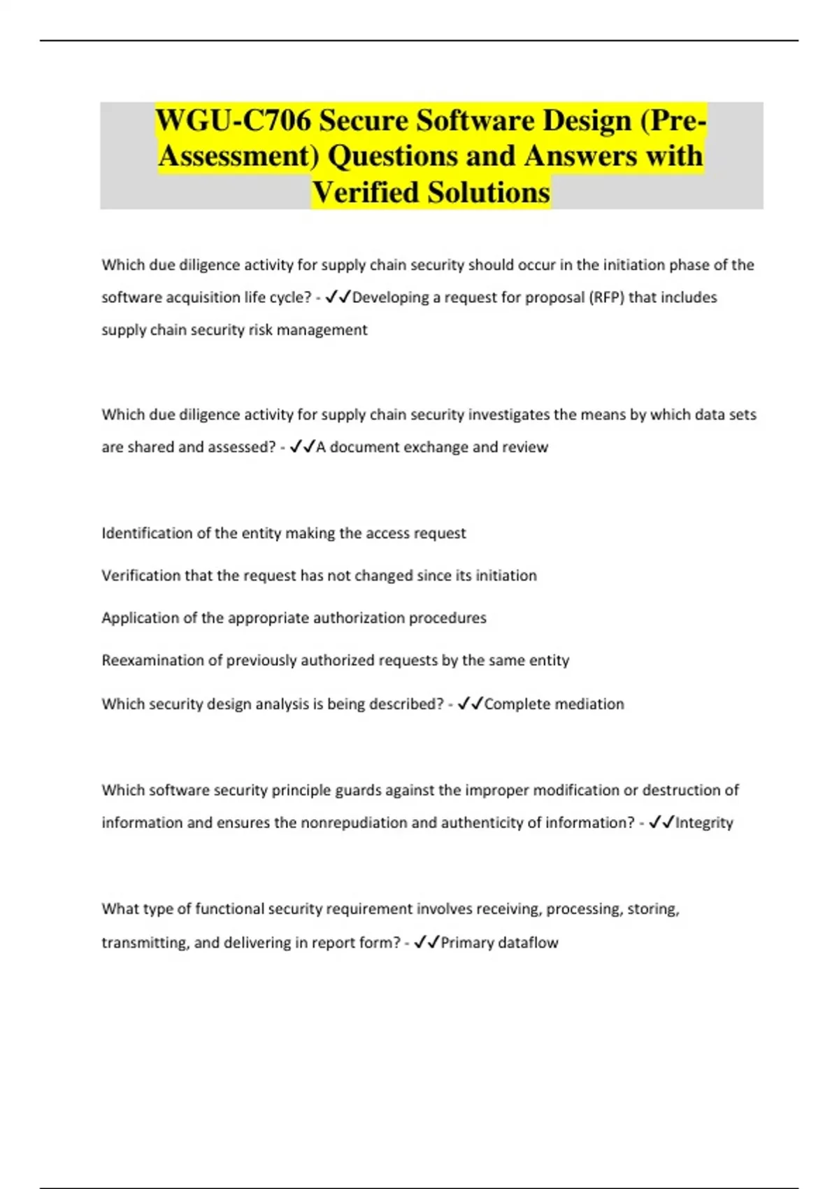 WGU-C706 Secure Software Design (PreAssessment) Questions and Answers with Verified Solutions
