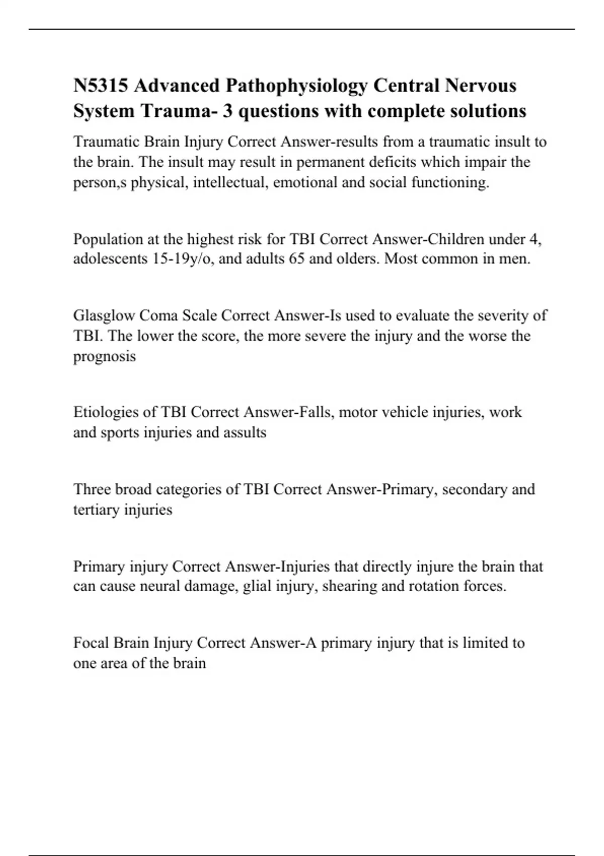 N5315 Advanced Pathophysiology Central Nervous System Trauma