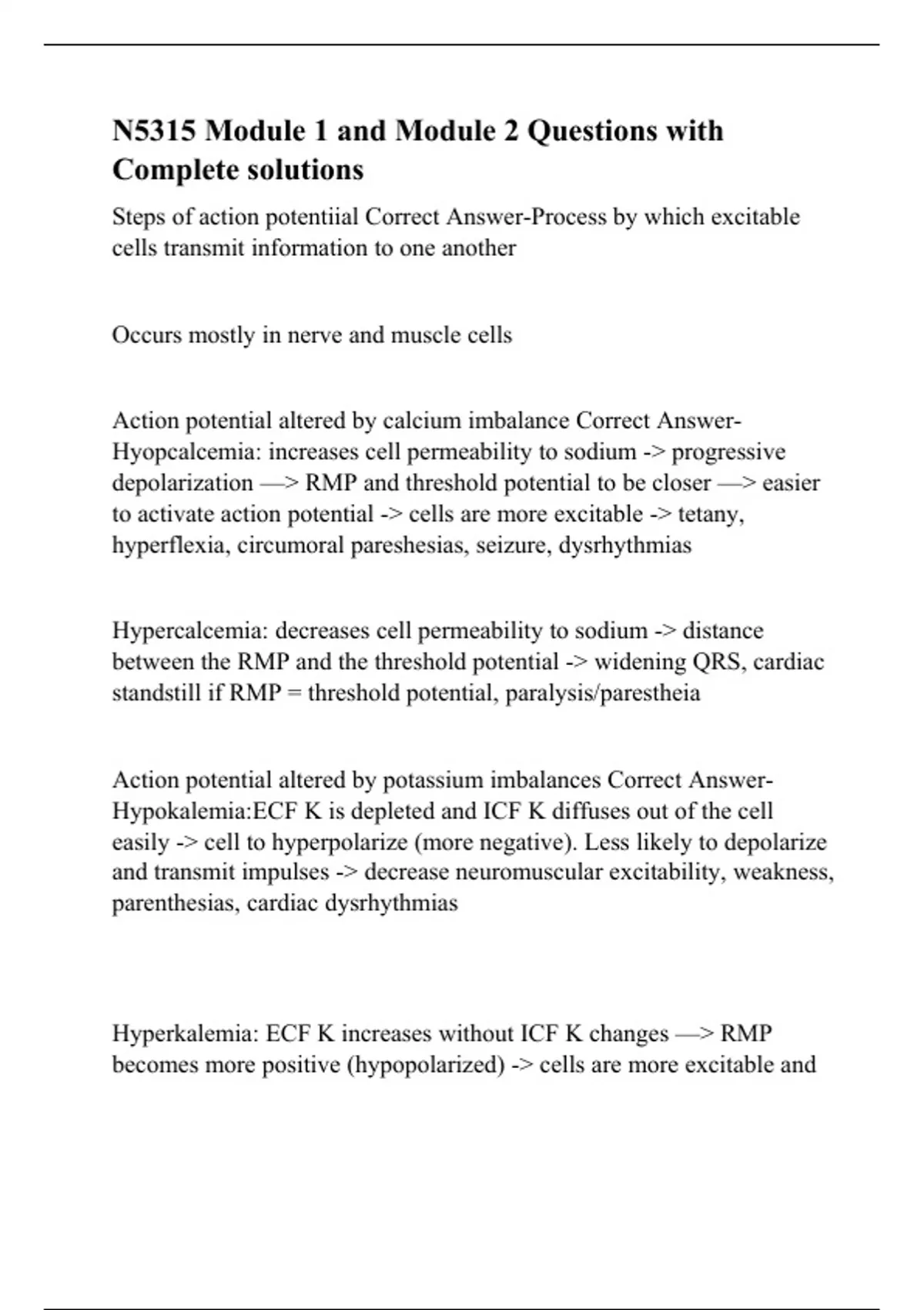 N5315 Module 1 and Module 2 Questions with Complete solutions