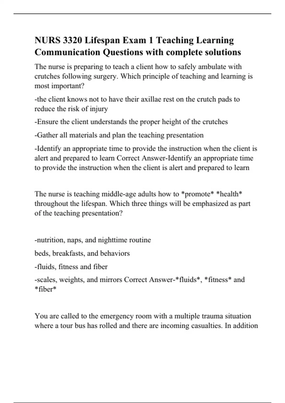 NURS 3320 Lifespan Exam 1 Teaching Learning Communication Questions with complete