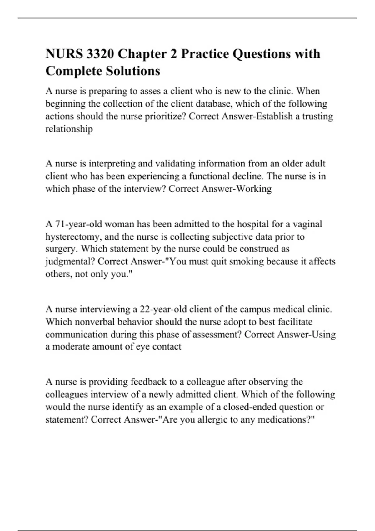 nurs 3320 chapter 2 practice questions with comple