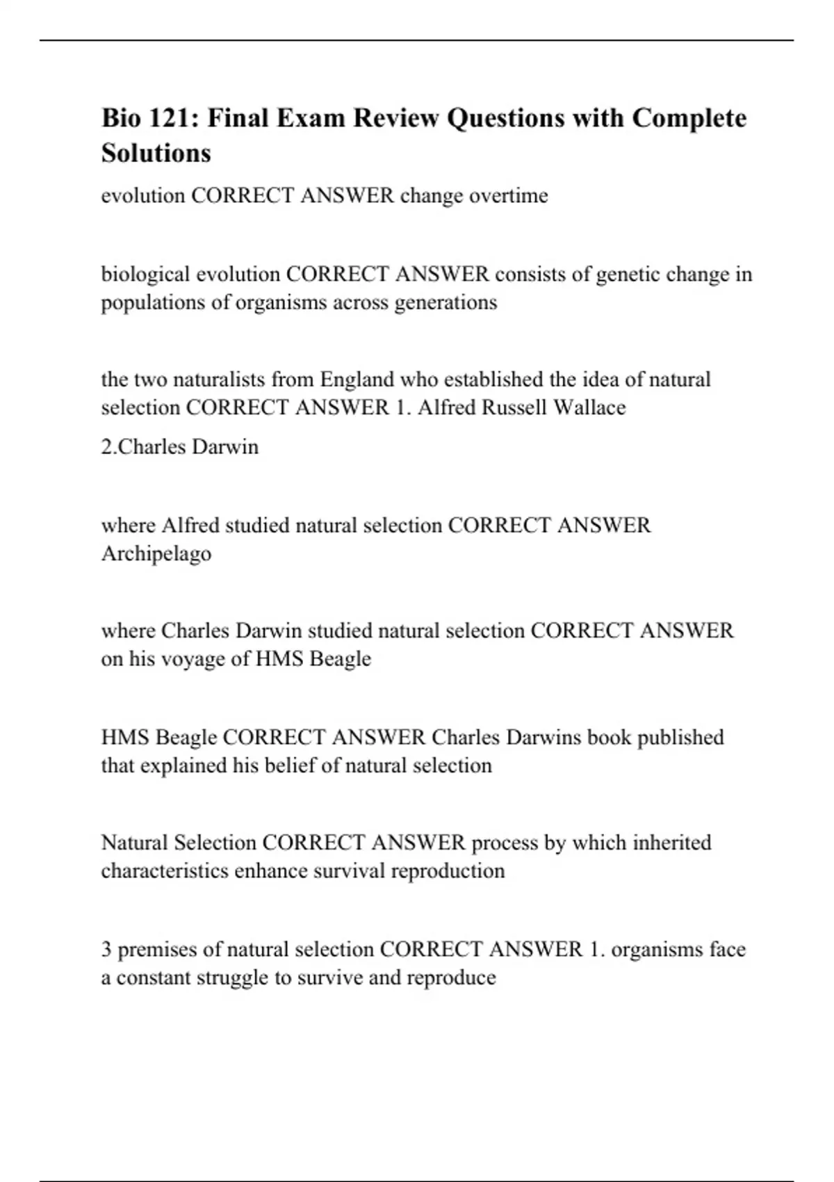 Bio 121: Final Exam Review Questions with Complete Solutions
