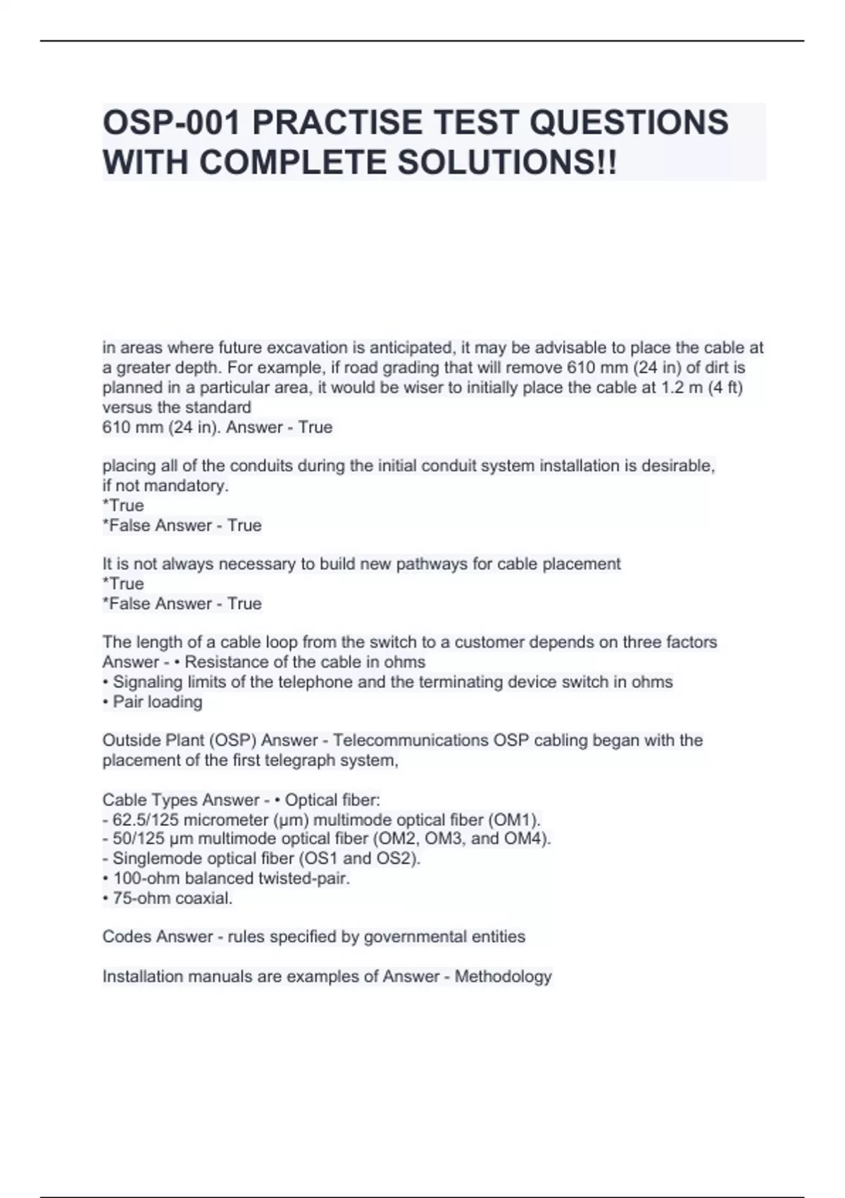 osp 001 practise test questions with complete solu