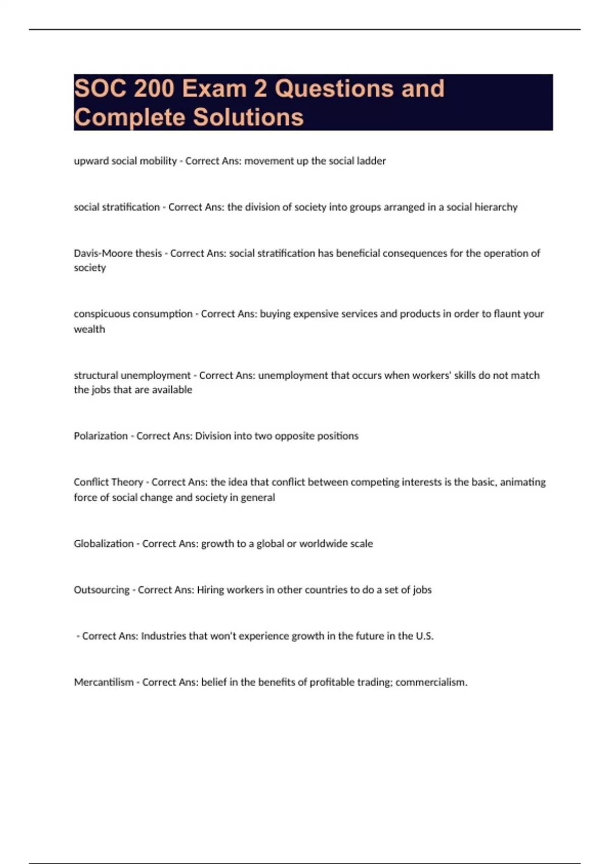 SOC 200 Exam 2 Questions and Complete Solutions.