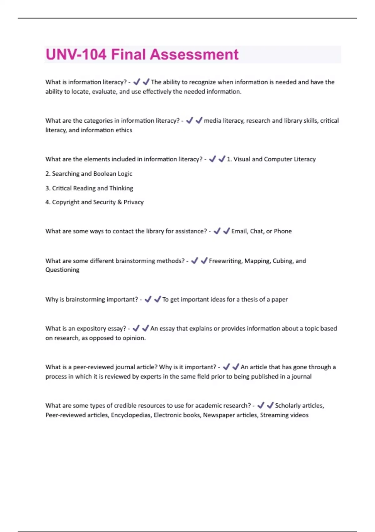 UNV-104 Final Assessment Questions With 100% Verified Answers!!