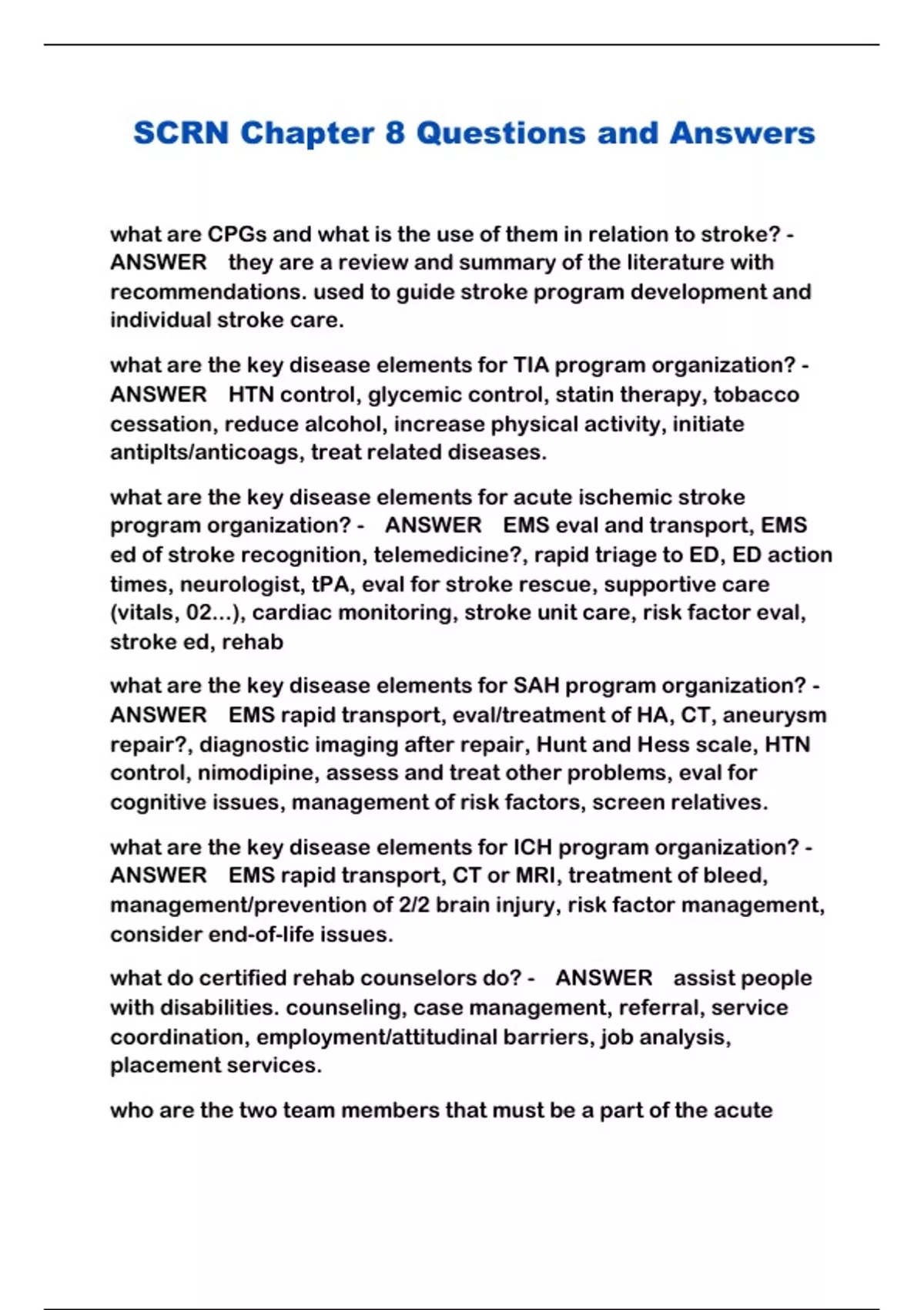 SCRN Chapter 8 Questions and Answers ...