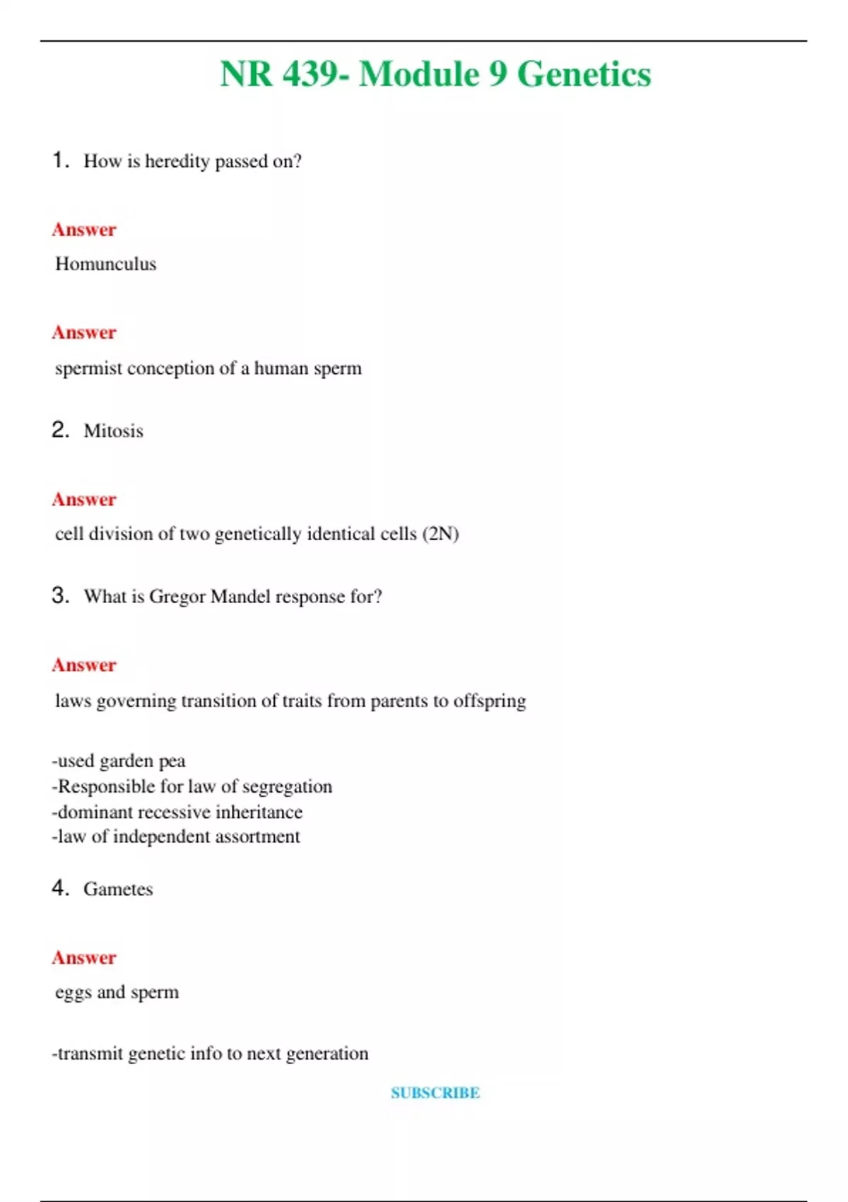NR 439- Module 9 Genetics (Latest 2024 / 2025) Questions and Answers (Verified Answers)